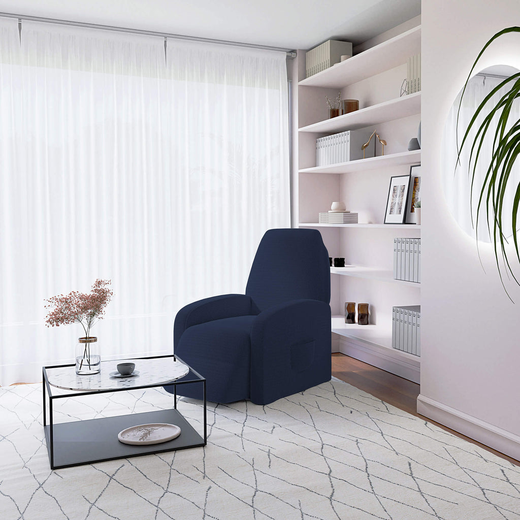 Housse de fauteuil inclinable extensible taille unique avec poche latérale bleu foncé