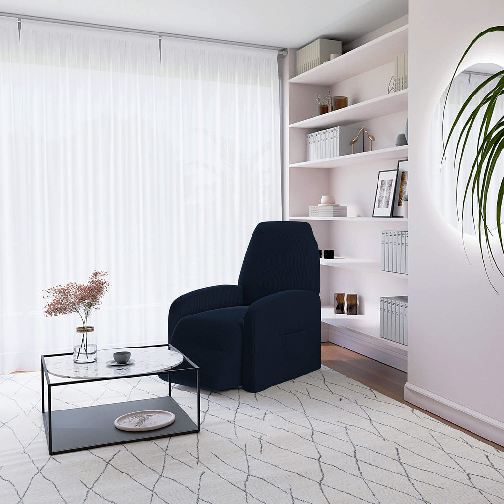 Housse de fauteuil inclinable extensible taille unique avec poche latérale bleu foncé