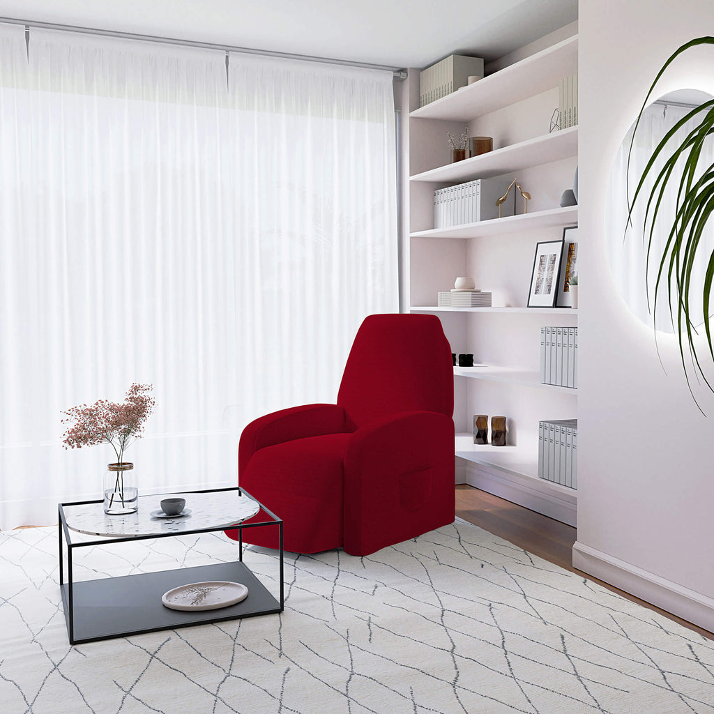 Housse de fauteuil inclinable extensible taille unique avec poche latérale bordeaux