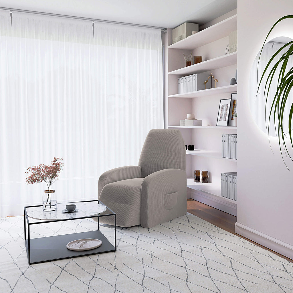 Housse de fauteuil inclinable extensible taille unique avec poche latérale taupe