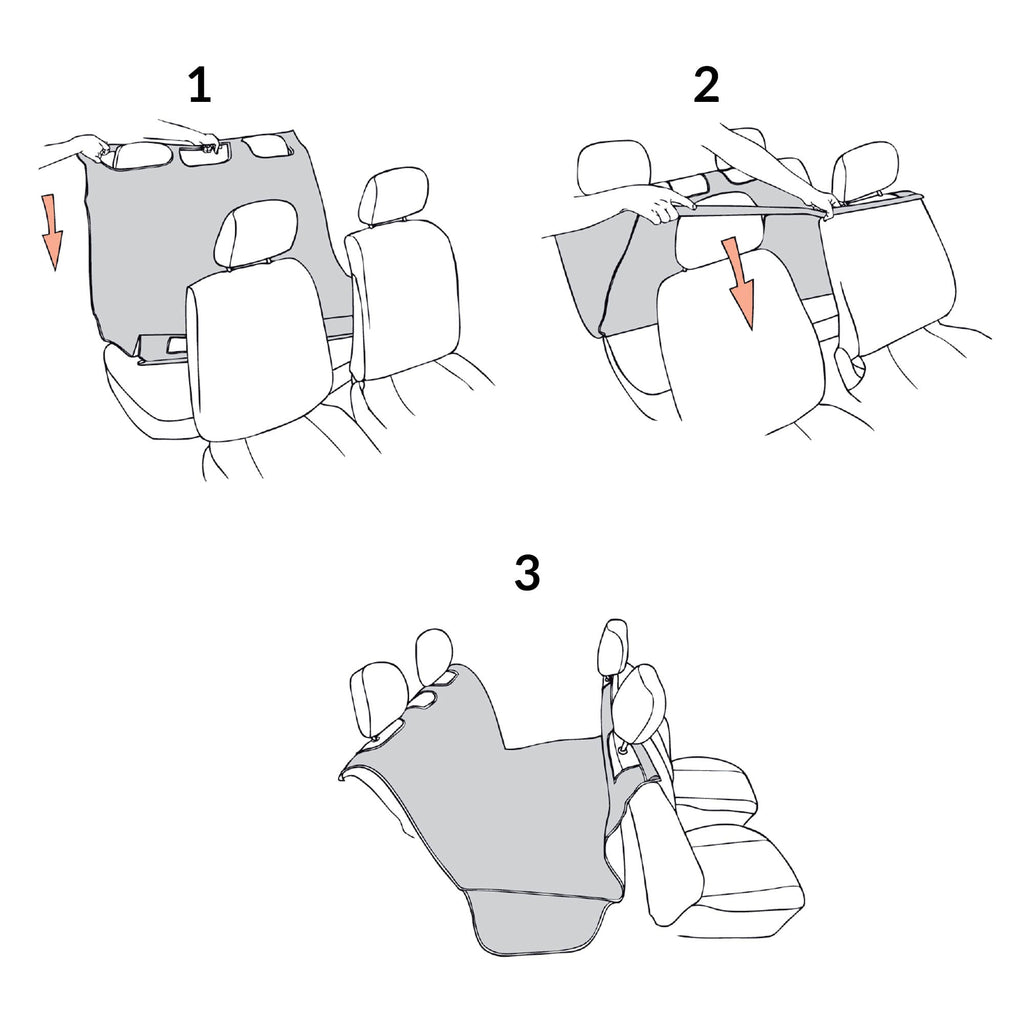 Tissu non tissé pour le transport d'animaux sur la banquette arrière. Universelle, la fixation aux appuis-tête avant et arrière crée une sorte de hamac qui protège l'animal en cas de freinage brusque, et en même temps empêche les animaux de bouger sur les sièges avant. Il protège également le côté du siège grâce à des rabats spéciaux. Très pratique car il est rapide et facile à appliquer et à retirer grâce au raccord rapide innovant. Lorsqu'il est attaché aux appuie-tête arrière uniquement, il agit comme une housse de siège arrière. Il peut également être utilisé pour la protection du coffre. Conçu pour le transport de petits et grands animaux, il est également utile pour le transport d'objets et de valises.