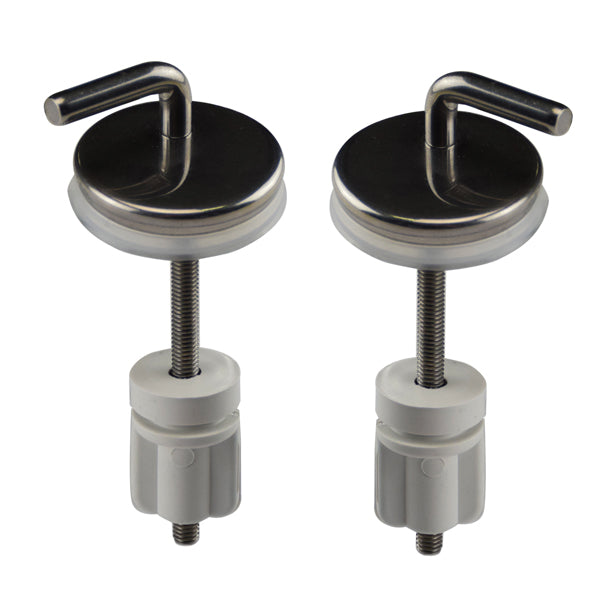 Charnières de siège de toilette en acier inoxydable , réglables et vissables par le bas.