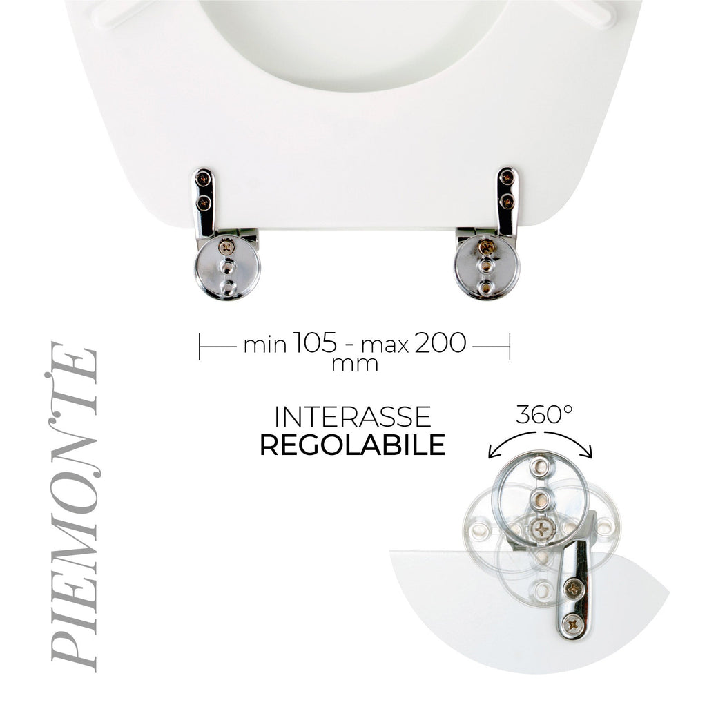 Abattant WC universel 37x43,6 cm en MDF Piémont Charnières en métal chromé Blanc Brillant