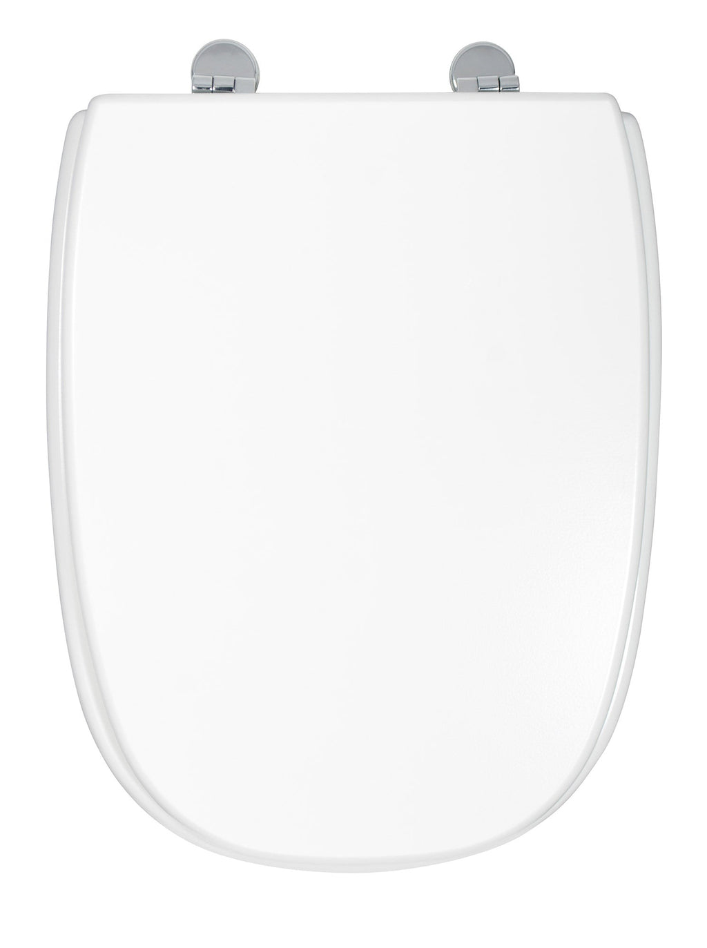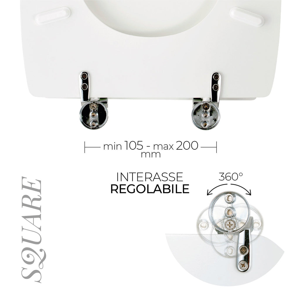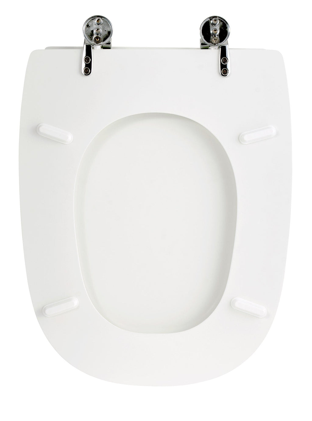 Abattant WC universel 35,5x44,3 cm en MDF Charnières Métal Chromé Carré Blanc Brillant