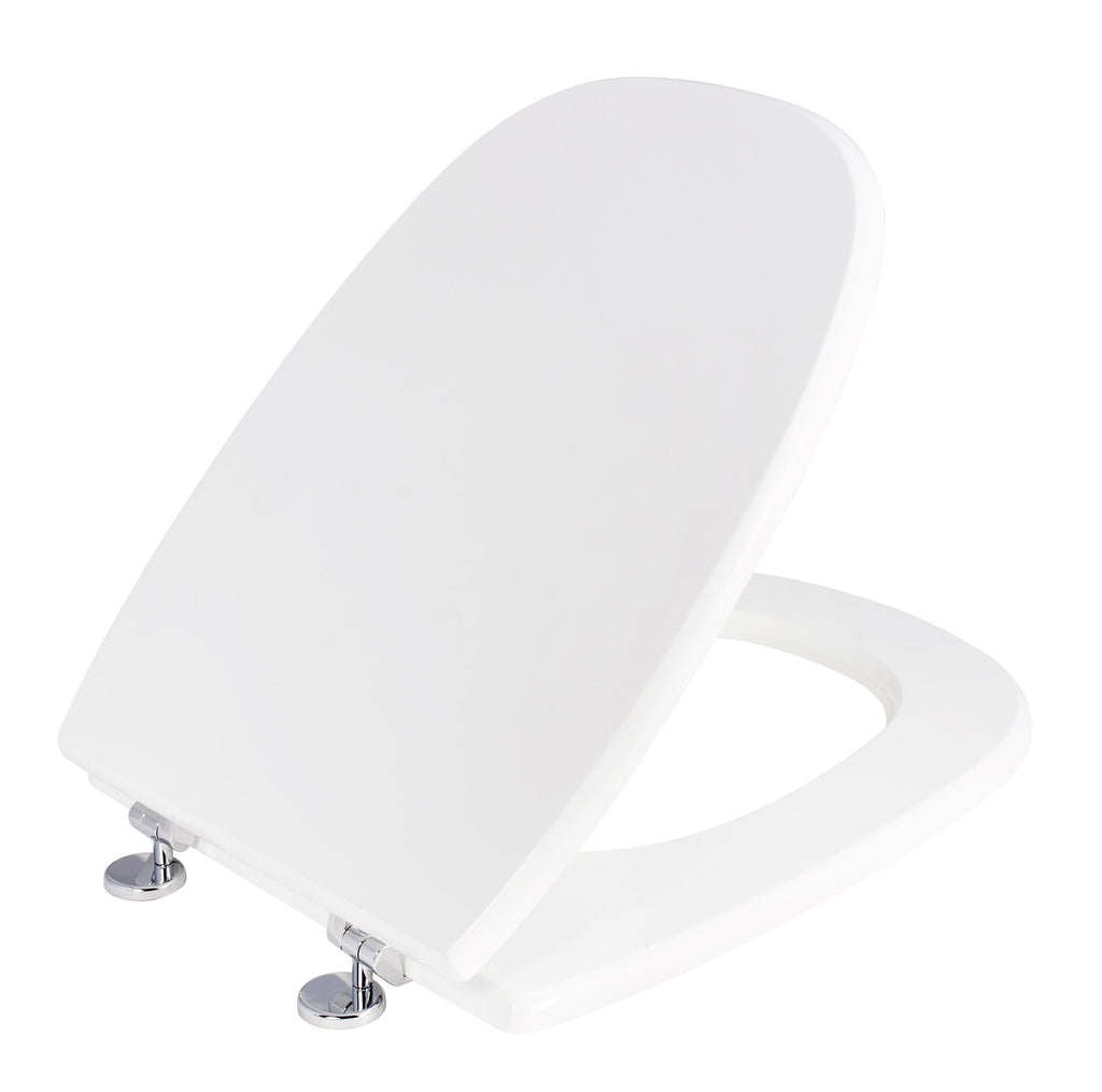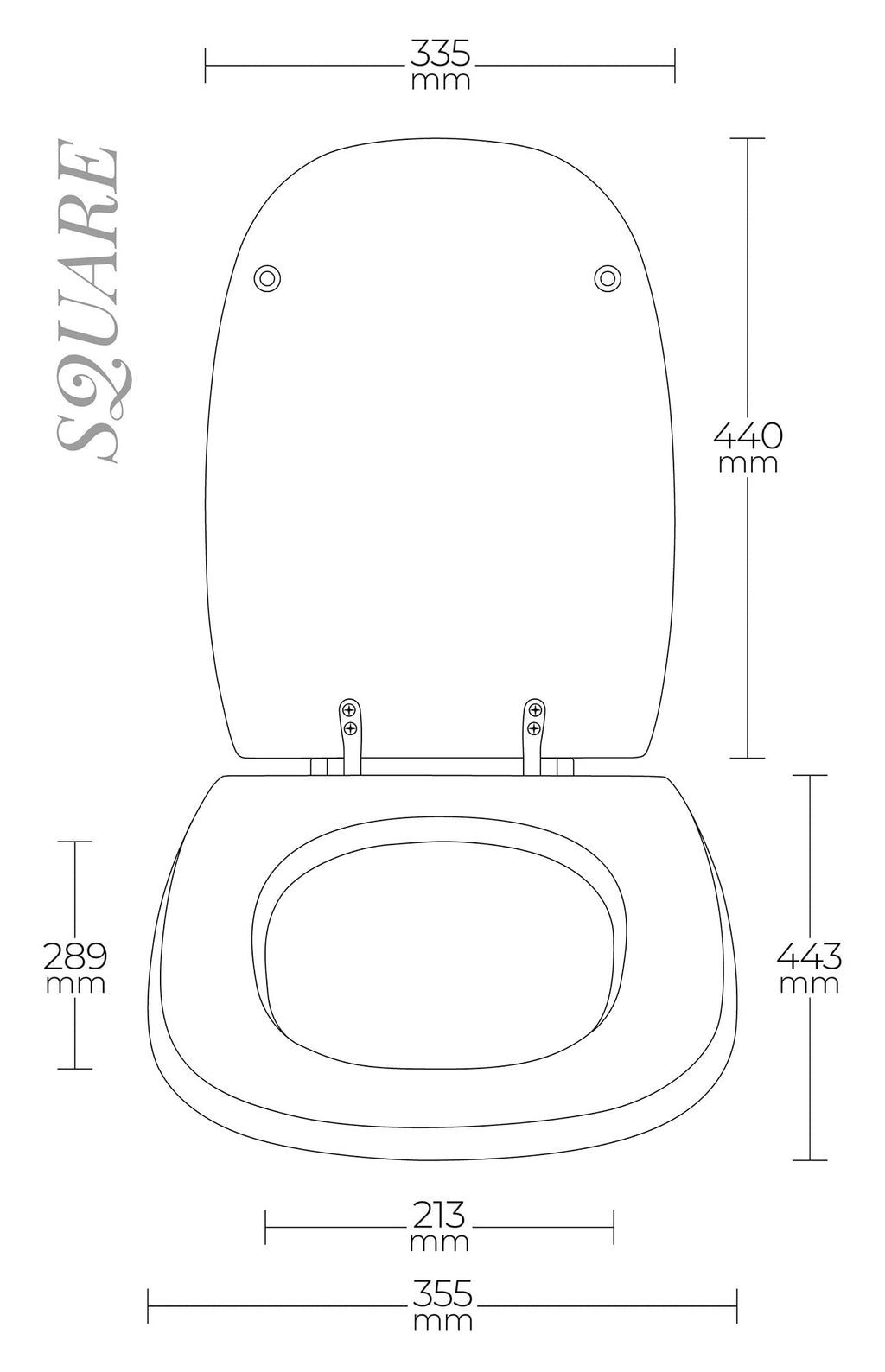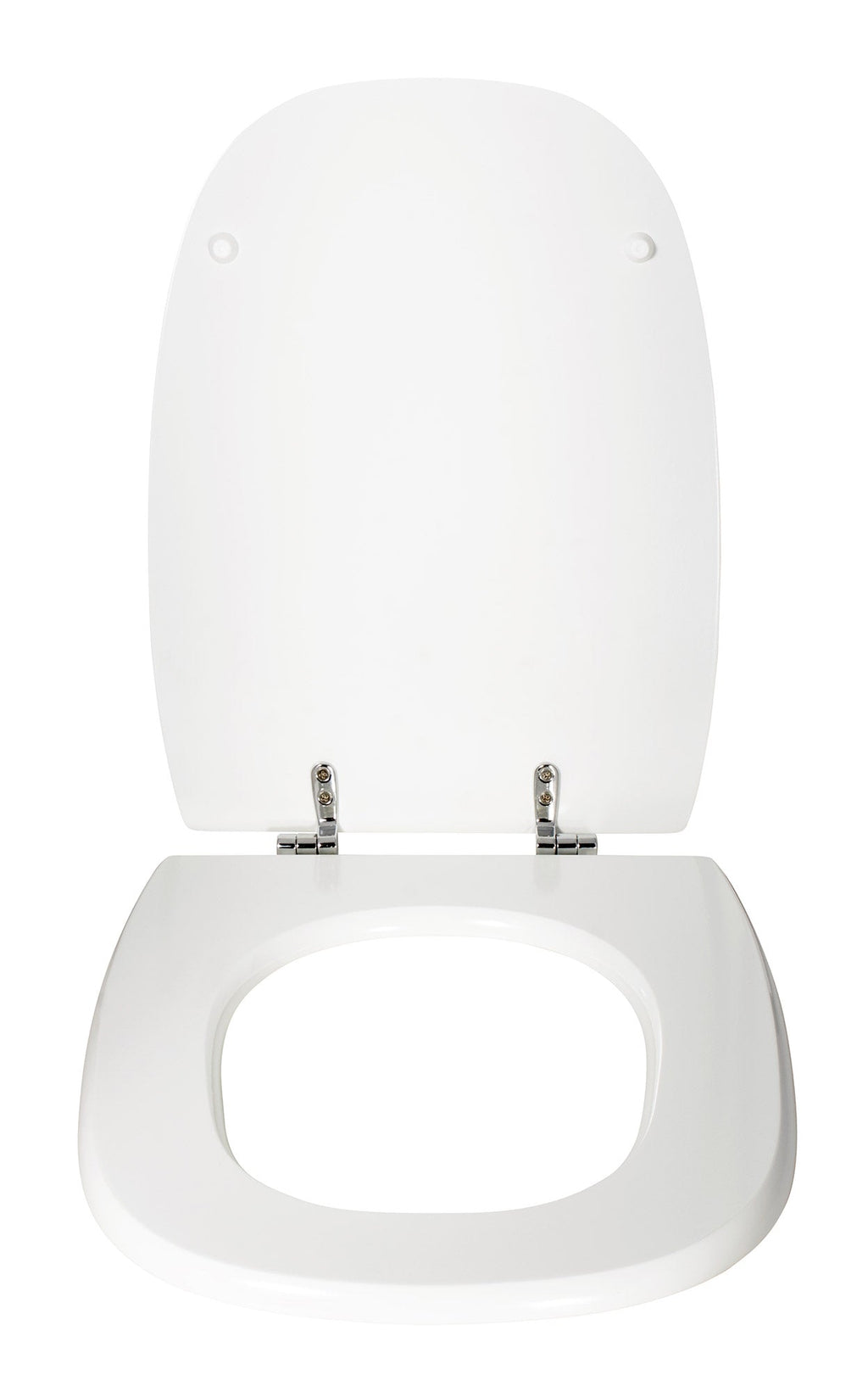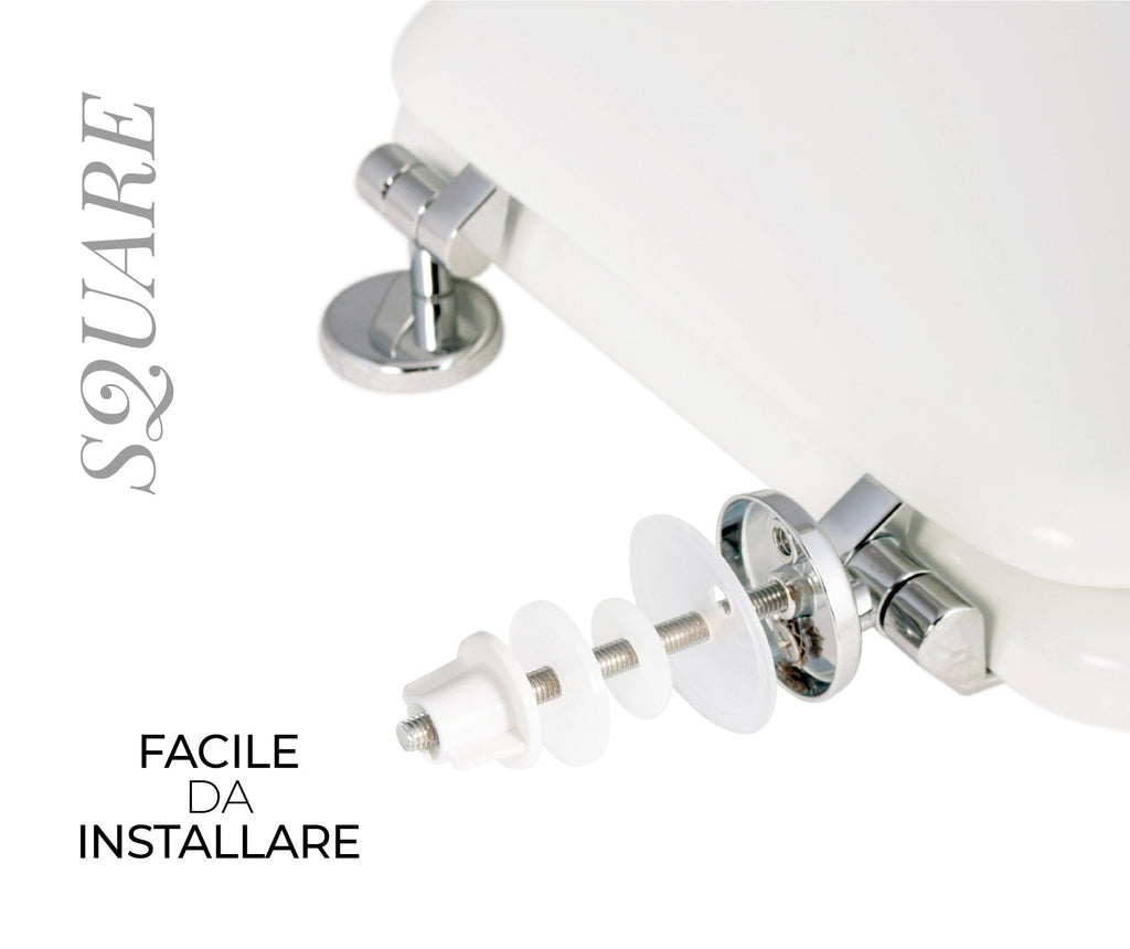 Abattant WC universel 35,5x44,3 cm en MDF Charnières Métal Chromé Carré Blanc Brillant