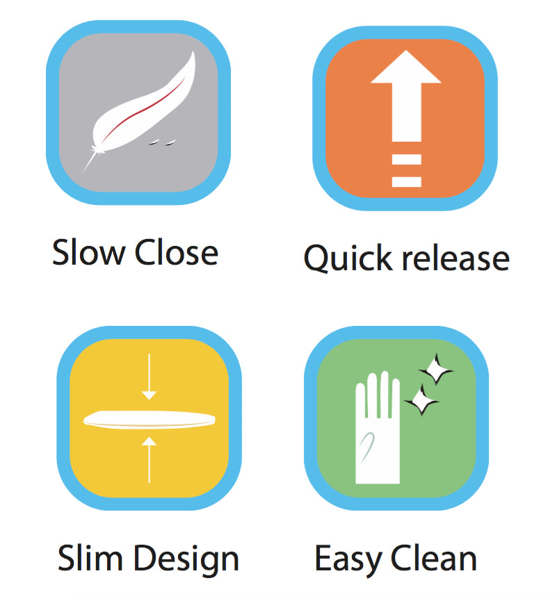 Les abattants de toilettes thermodurcissables sont très confortables et rapides à nettoyer, grâce au système de dégagement rapide qui permet de retirer l'ensemble de l'abattant d'un seul geste.