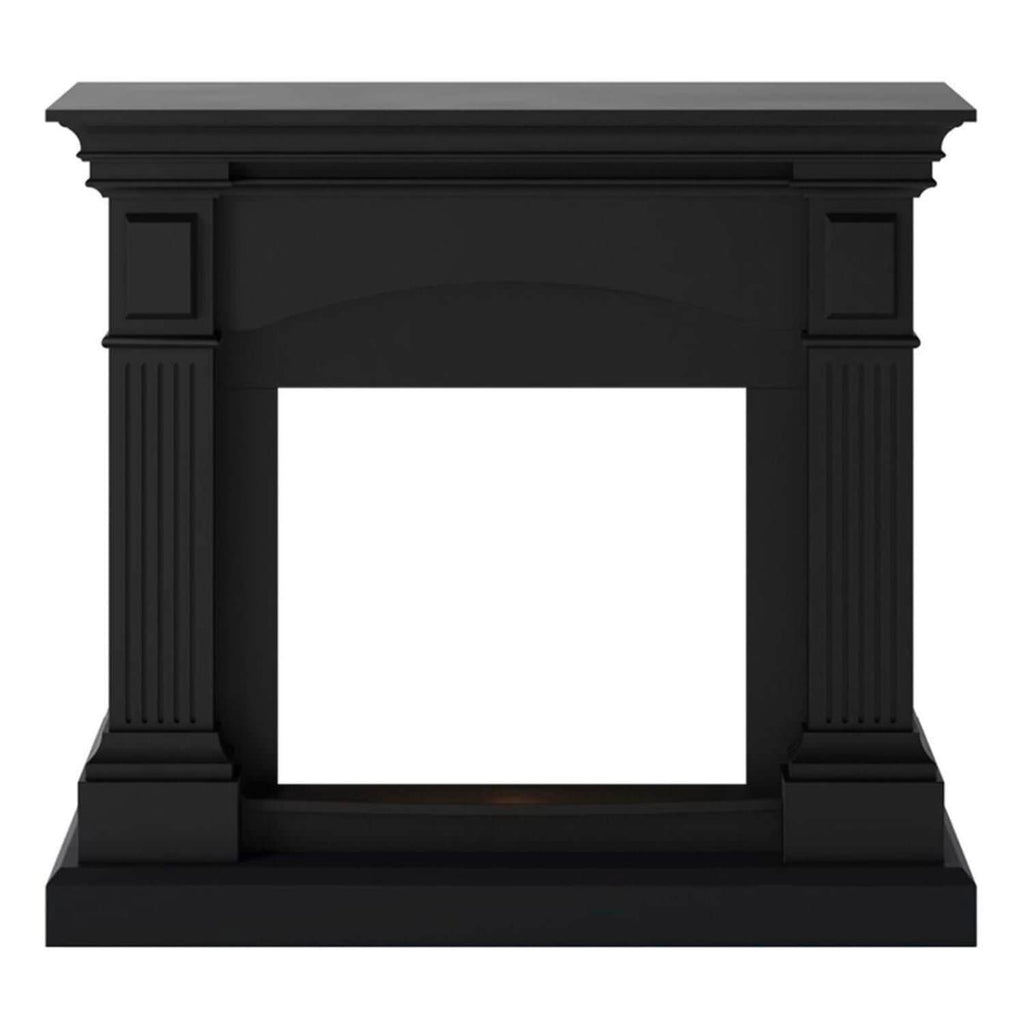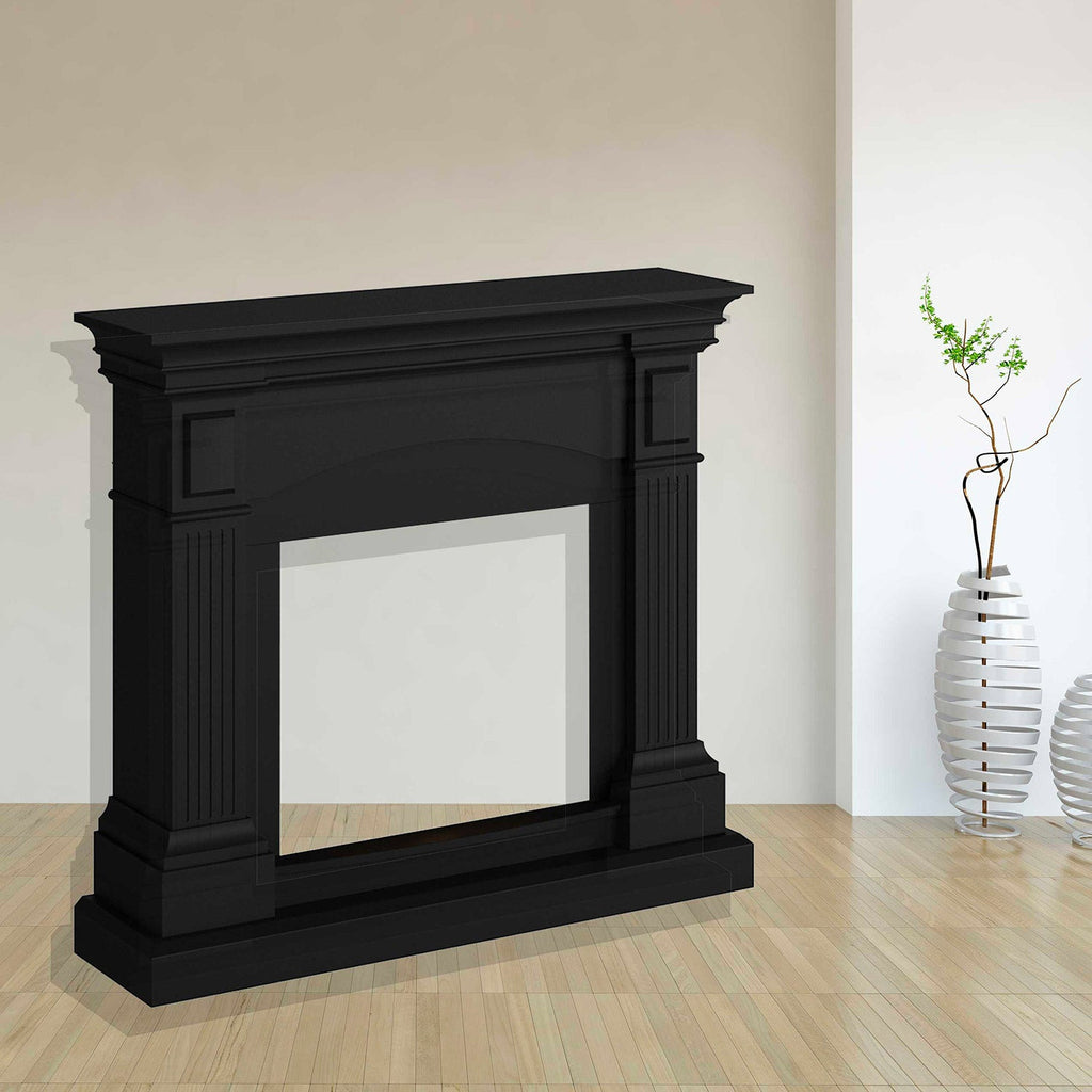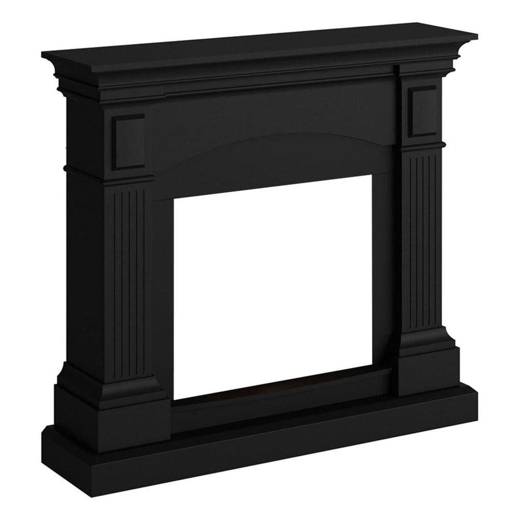 Cadre pour cheminée au sol modèle CETONA, couleur noir profond. Cadre de style classique pour cheminée électrique.