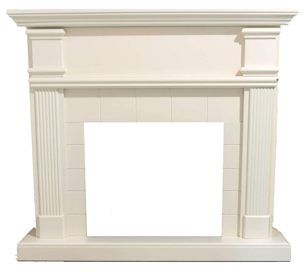 Cadre de cheminée au sol modèle Caldera, couleur blanc crème. Cadre de style classique modèle Caldera pour foyer électrique.