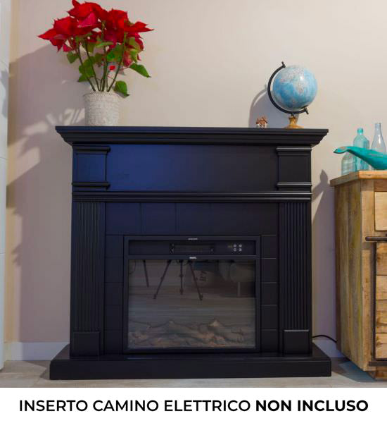 Cadre de sol pour insert de cheminée électrique 114x28,2x102,2 cm en MDF Sined Caldera Noir