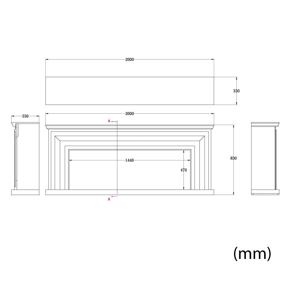 Cadre de sol pour insert de cheminée électrique 200x83x33 cm en MDF Sined Merapi Blanc