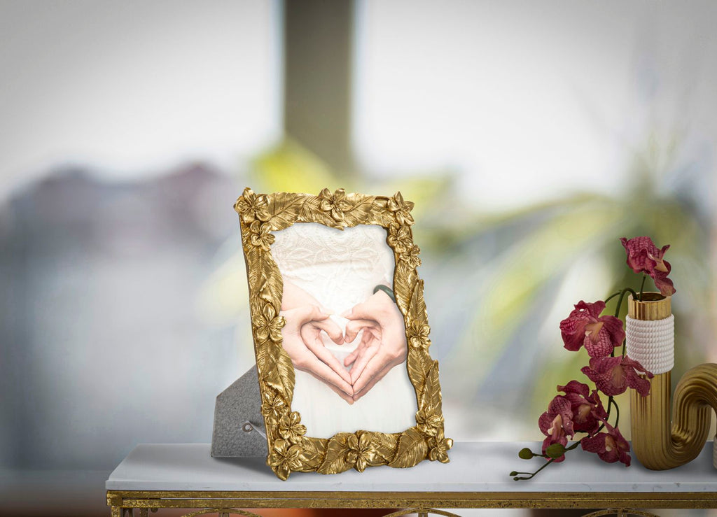 Questo elegante portafoto presenta una delicata cornice adornata da foglie e fiori, che aggiunge un tocco naturale e raffinato alla sua estetica. Il formato ideale di cm 15x20 rende questa cornice perfetta per esporre le tue foto preferite con stile e fascino. Sia che vogliate regalarlo o utilizzarlo per arricchire la vostra casa, questo portafoto è sicuramente un'ottima scelta per incorniciare i vostri ricordi più preziosi.
