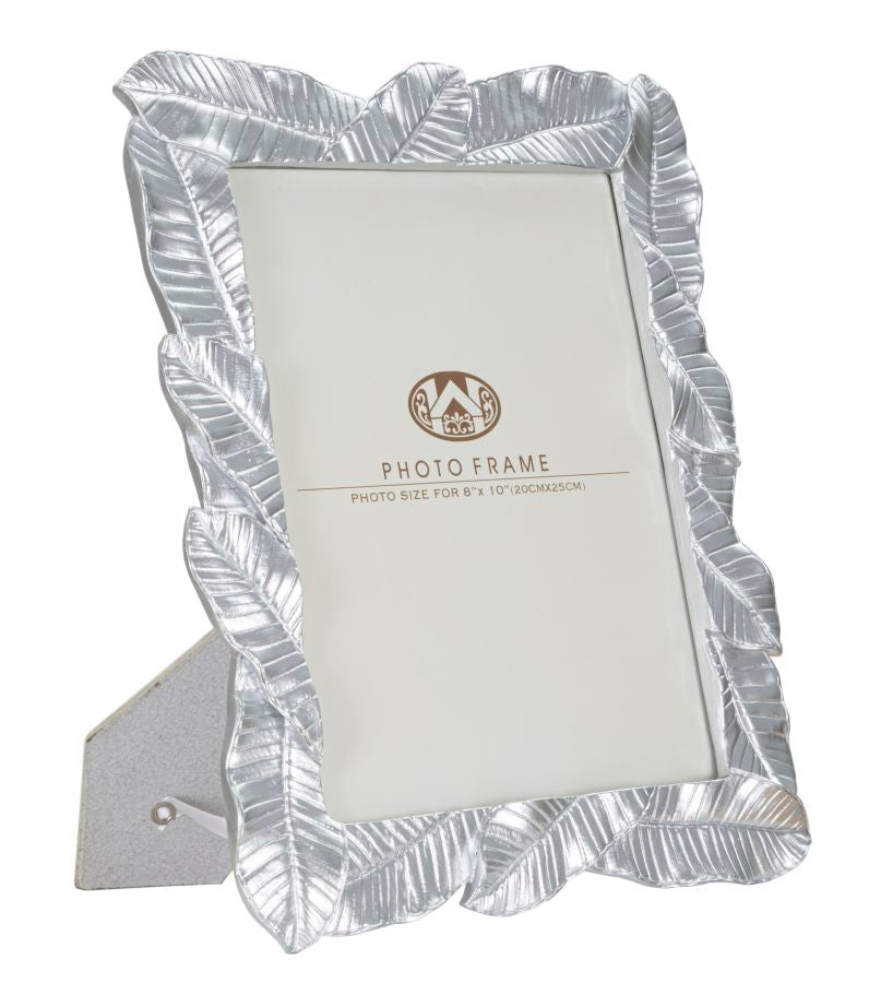 Cadre en résine avec verre. Des lignes élégantes qui rappellent les feuilles de laurier pour encadrer vos plus beaux souvenirs de manière contemporaine et jamais prévisible.