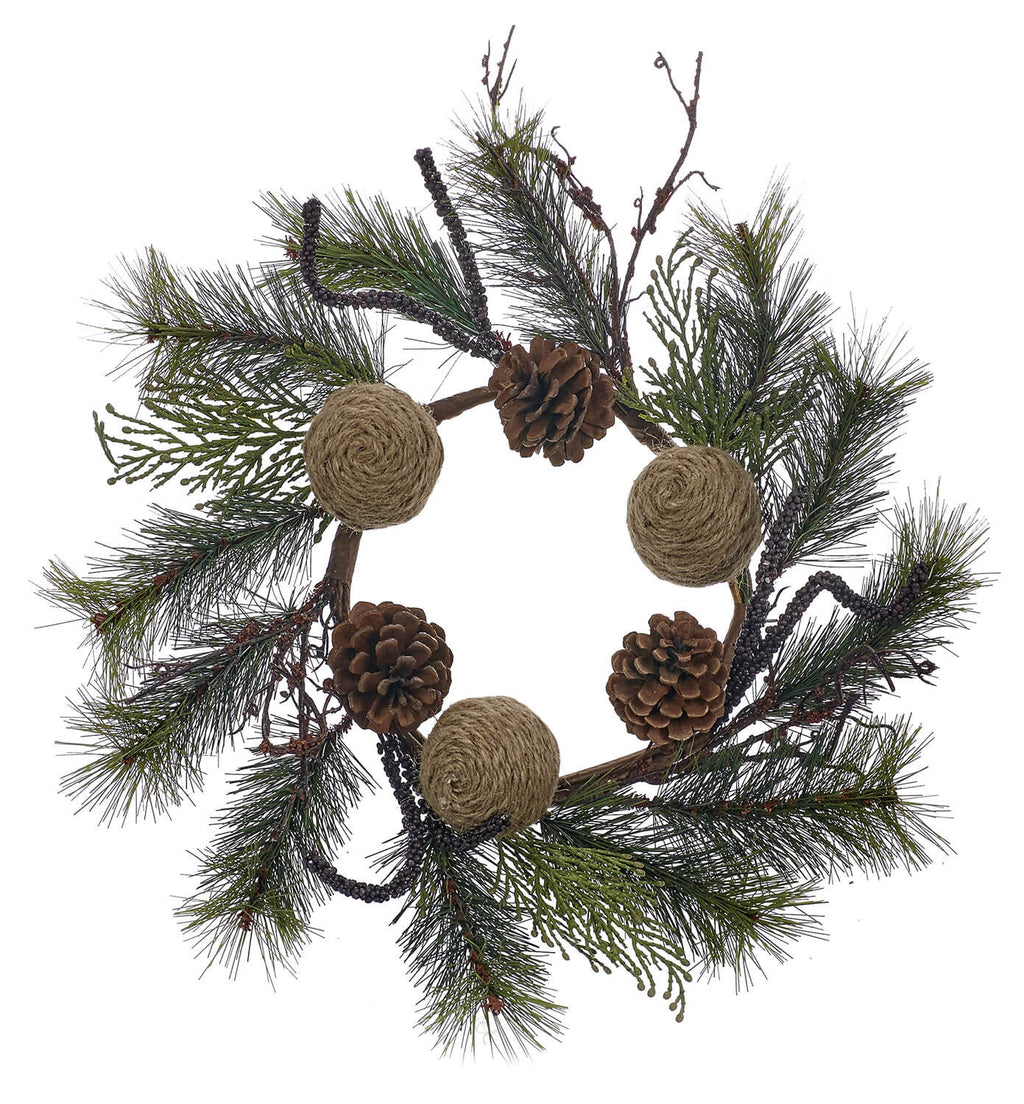 Couronne de Noël d'extérieur Ø38 cm avec pommes de pin et boules de laine beiges