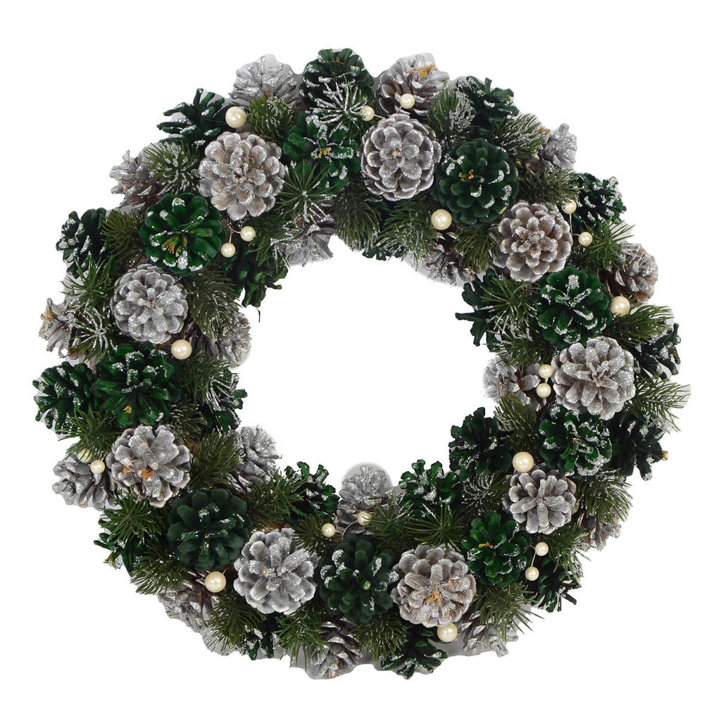 - Couronne avec pommes de pin argentées vertes Ø30 cm