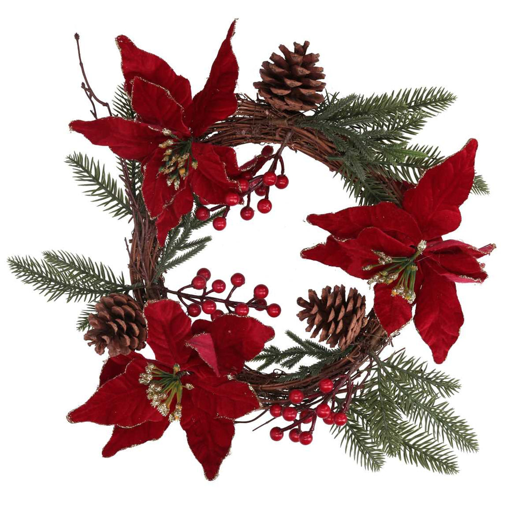 Coroncina fiori pigne rosso oro tondo cm Ø50x10