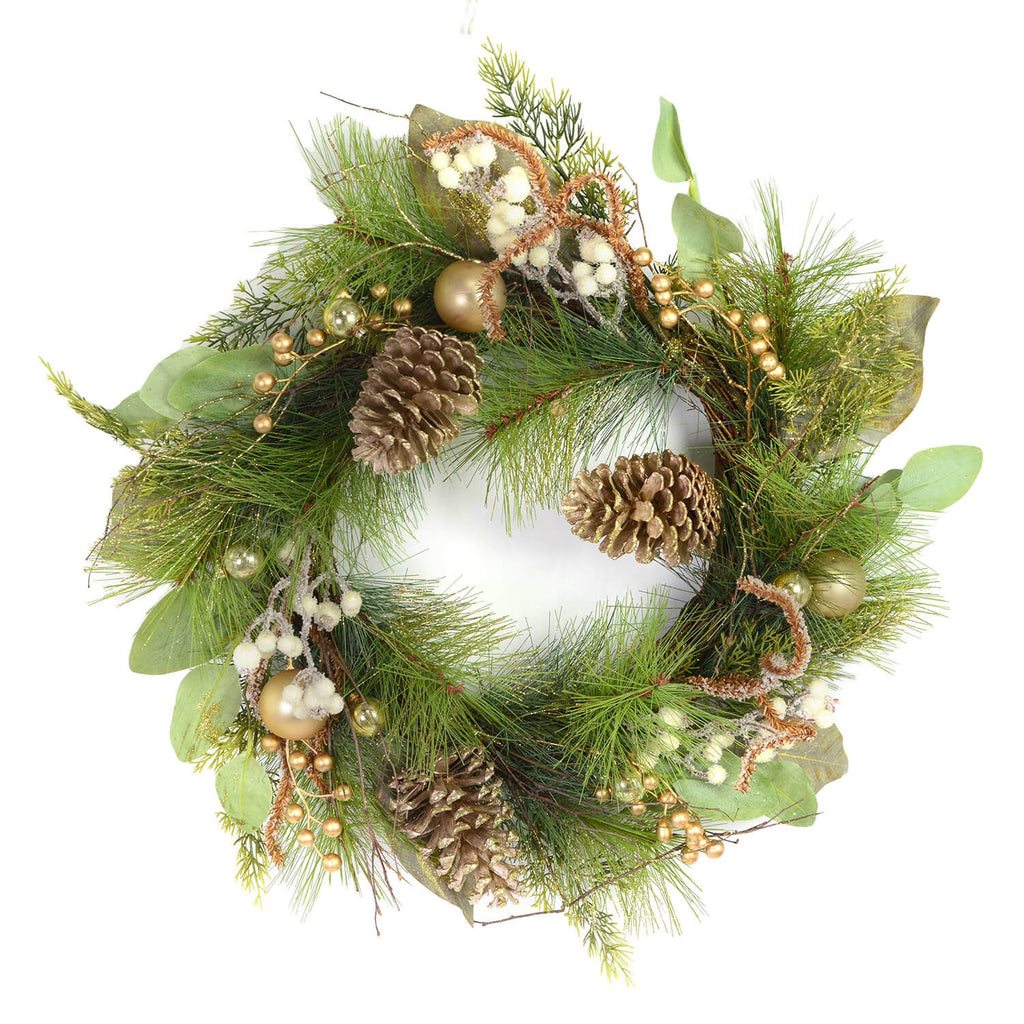 Couronne dorée avec pommes de pin vertes Ø60 cm