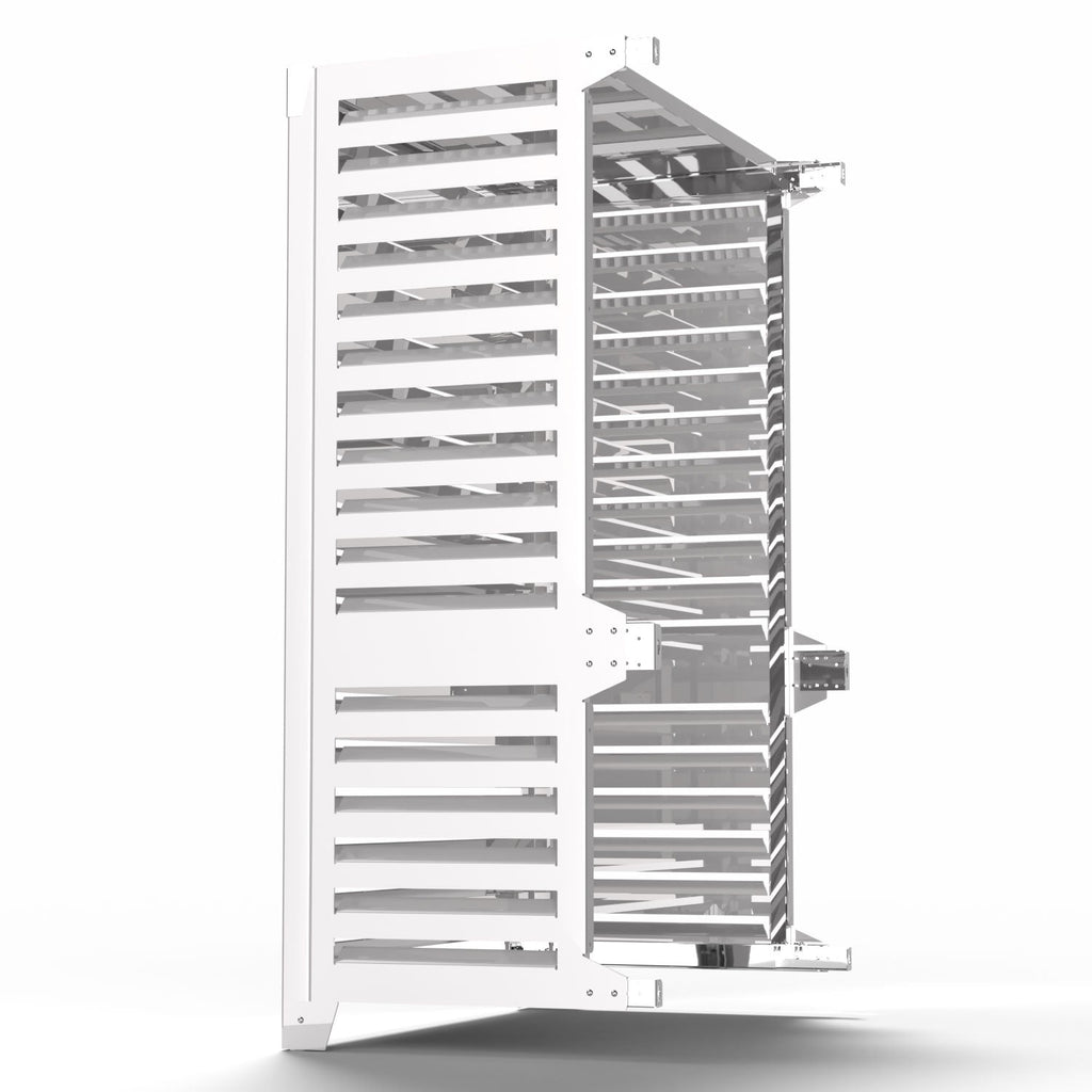 Big Blade è la cover per pompe di calore di grandi dimensioni dalle forme architettoniche rigorose ed eleganti. Protegge l'unità esterna da pioggia e grandine, riduce il rumore, valorizza la facciata.