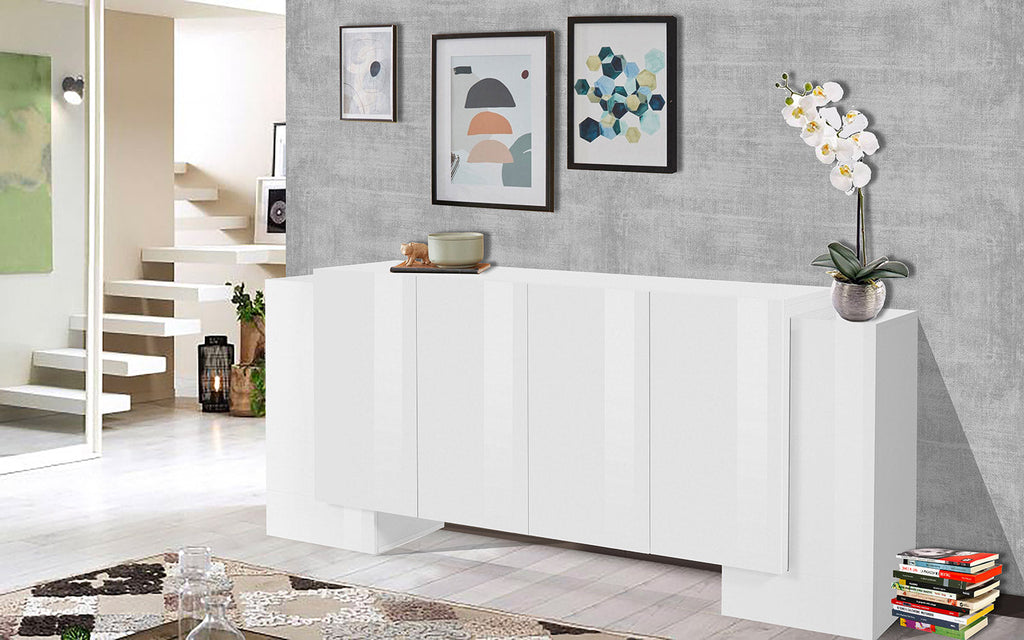 Credenza 2 + 4 Ante 210x45x85 cm Pillon Bianco Lucido