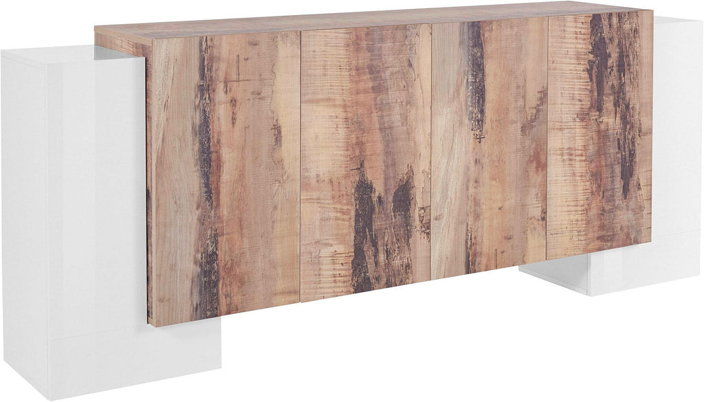 Credenza 2 + 4 Ante 210x45x85 cm Pillon Bianco Lucido e Acero Pereira