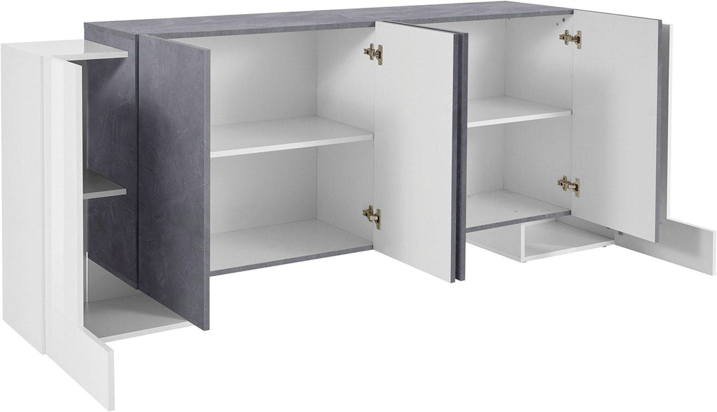 Credenza 2 + 4 Ante 210x45x85 cm Pillon Bianco Lucido e Ardesia