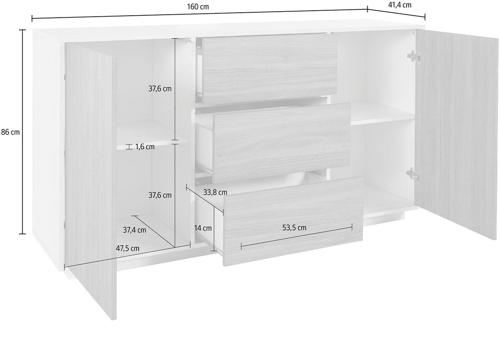 - Dimensioni del mobile montato: 160x41,4x86 cm (LxPxA)