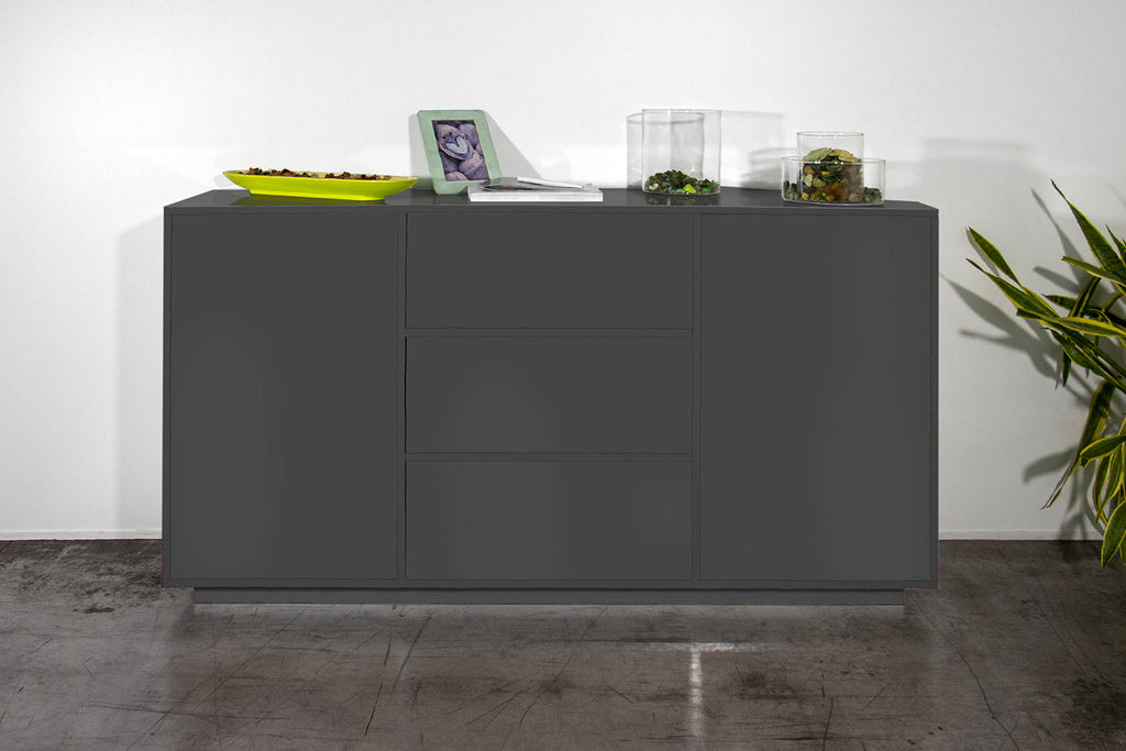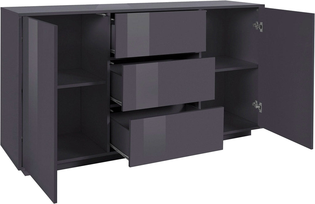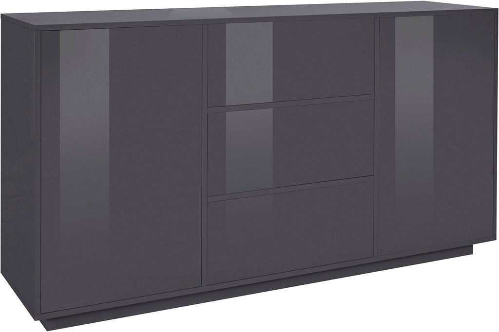 Credenza 2 Ante + 3 Cassetti 160x41,4x86 cm Bloom Grigio Antracite Laccato Lucido