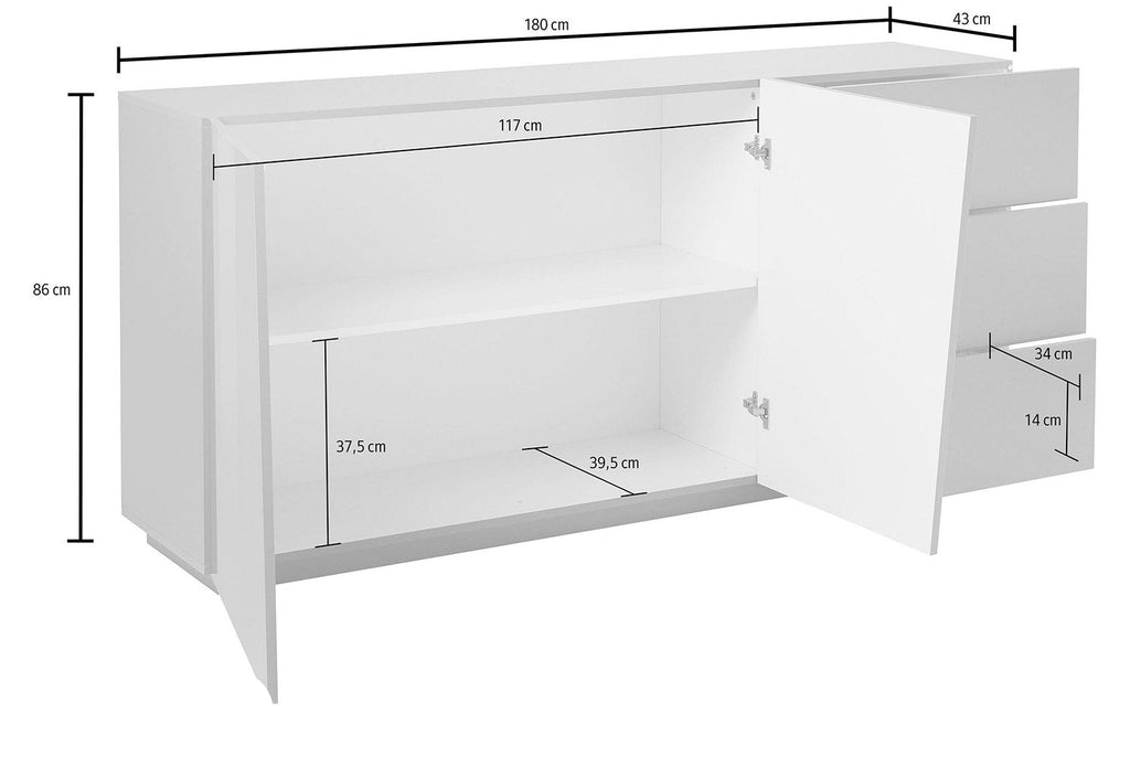 Credenza 2 Ante + 3 Cassetti 180x43x86 cm Vega Bianco Lucido