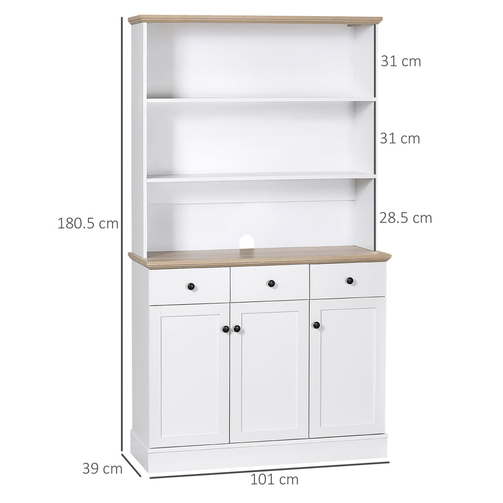 Credenza 3 Ripiani 3 Cassetti e 3 Ante 101x39x180,5 cm in Legno Bianco