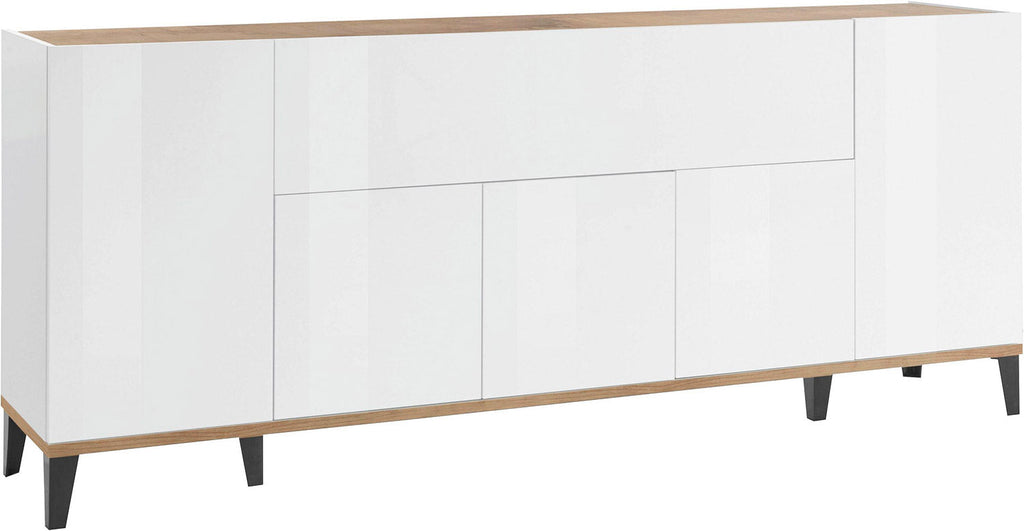 La credenza SUNRISE 4 ante + 1 anta ribalta da 200 cm, grazie alle sue dimensioni e a un design unico, riesce a essere perfetta in ogni tipo di ambiente. È caratterizzata da 4 ante e 1 anta ribalta. La credenza è sostenuta da sei piedini in plastica nera dalla forma pirami dalee dall'altezza di 10 centimetri. Con la sua forma lineare la credenza SUNRISE risulta elegante in qual sia si stile venga inserita. Il kit di montaggio comprende istruzioni semplici e dettagliate.