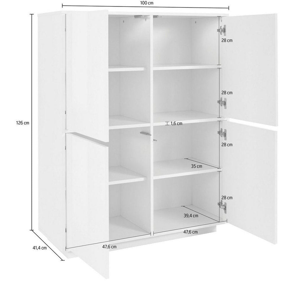 La credenza alta BLOOM da 100 cm con 4 ante è l'aggiunta perfetta al tuo salotto, combinando un bel design, 100% Made in Italy e un'alta funzionalità.