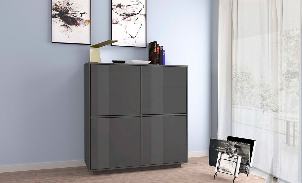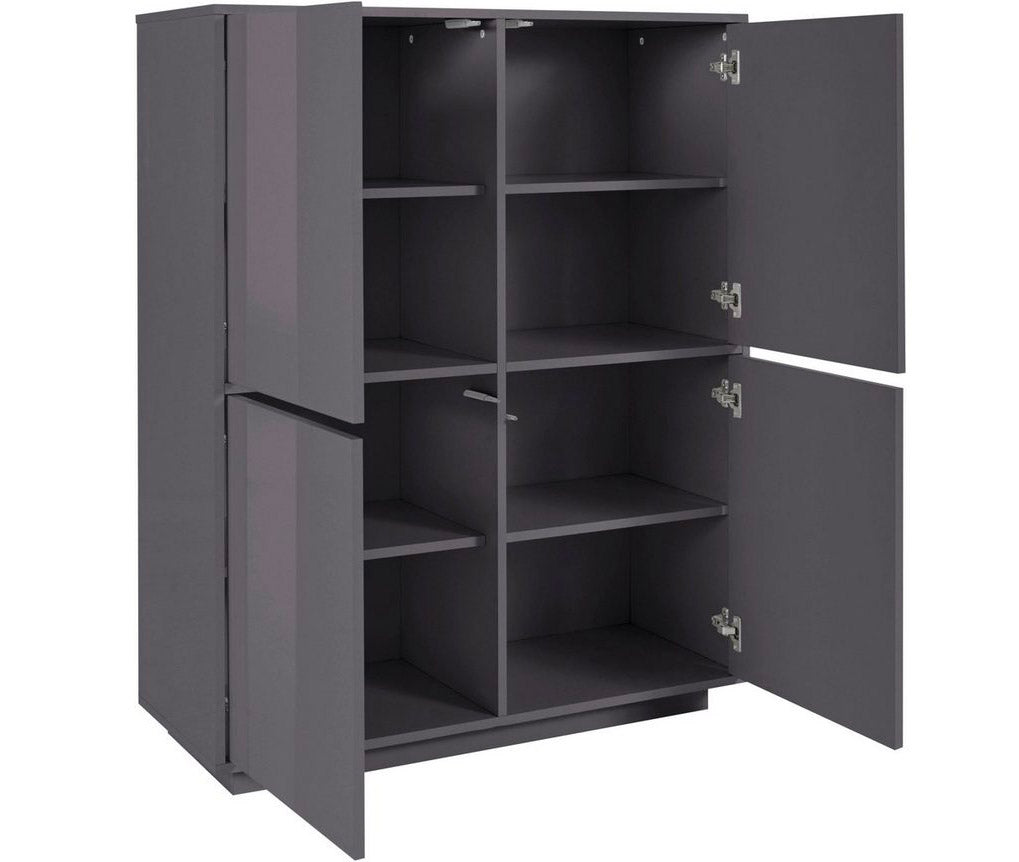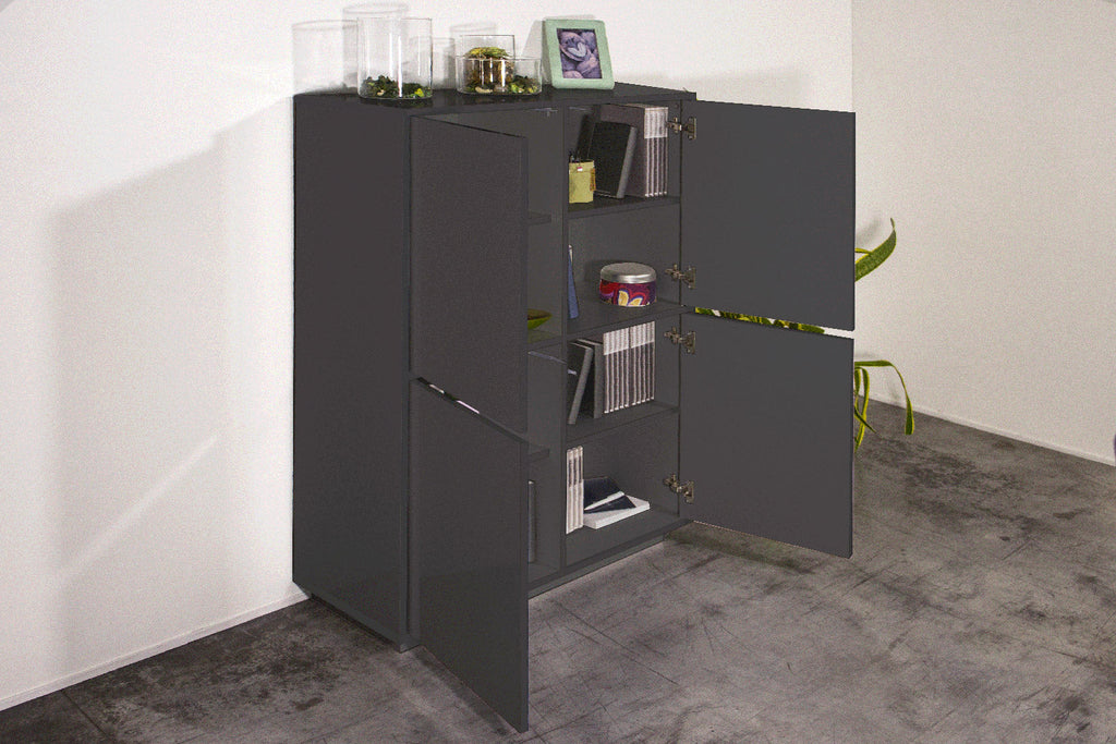 Credenza 4 Ante 100,1x41,4x126 cm Bloom Grigio Antracite Laccato Lucido