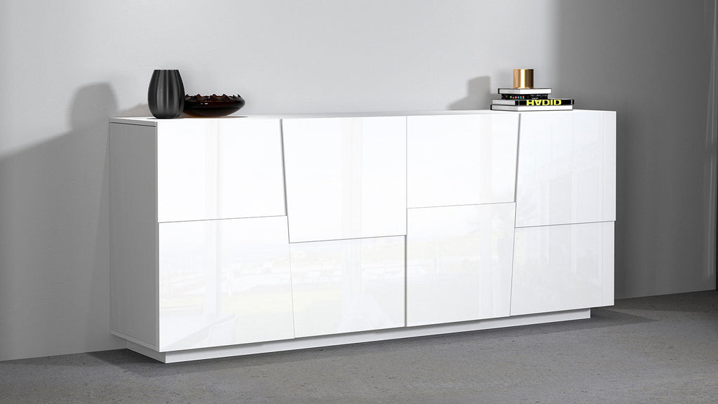 Credenza 4 Ante 200x44x86 cm Pongo 4A Bianco Lucido