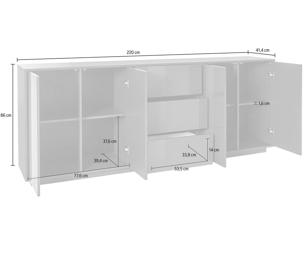Credenza 4 Ante + 3 Cassetti 220,1x41,4x86 cm Bloom Bianco Lucido