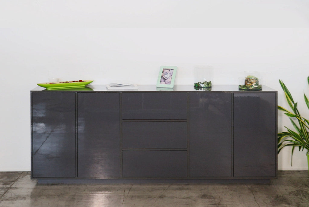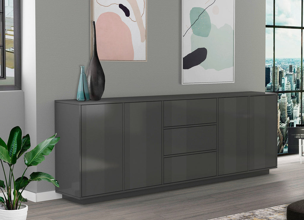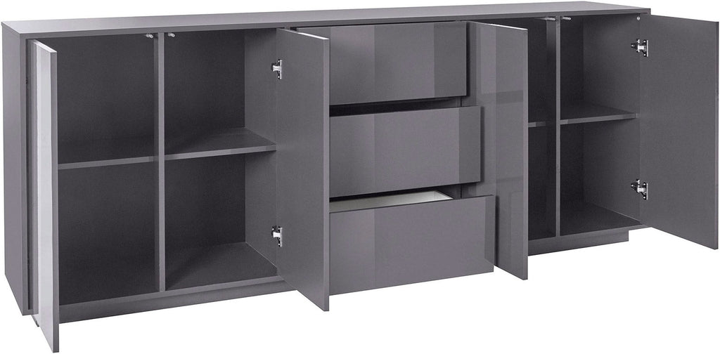 Credenza 4 Ante + 3 Cassetti 220,1x41,4x86 cm Bloom Grigio Antracite Laccato Lucido