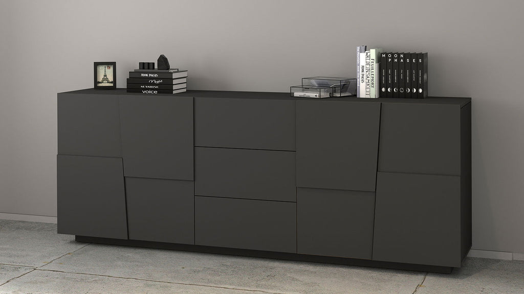 Credenza 4 Ante 3 Cassetti 220x44x86 cm Pongo 4A 3C Grigio Antracite Opaco