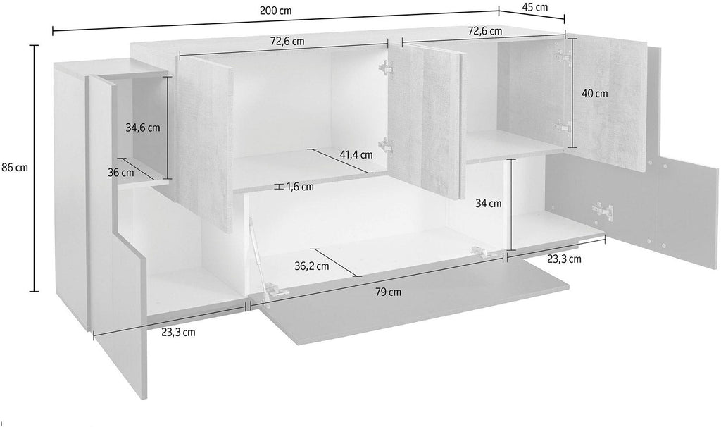 La credenza NEW CORO 3+4 ante da 200 cm è la soluzione perfetta per un soggiorno e una sala da pranzo.