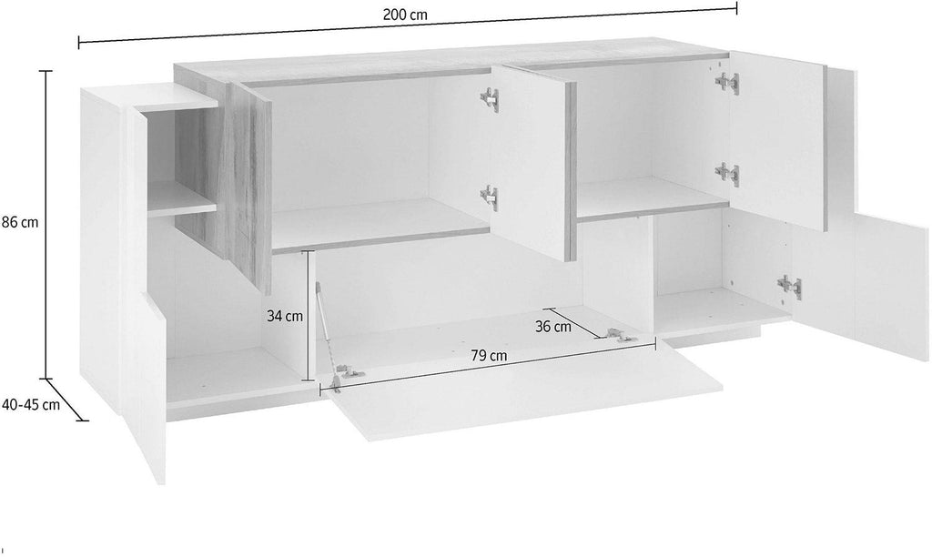 La credenza NEW CORO 3+4 ante da 200 cm è la soluzione perfetta per un soggiorno e una sala da pranzo.