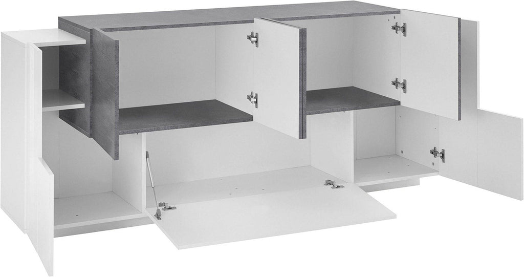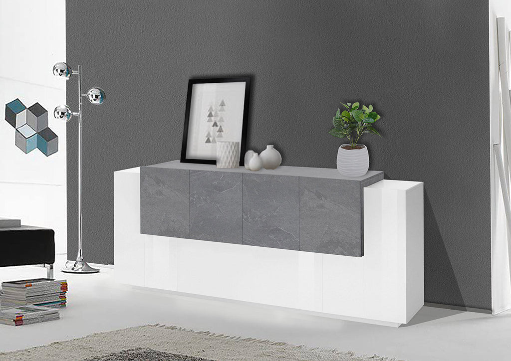 Credenza 7 Ante 200x45x86 cm New Coro Bianco Lucido e Ardesia