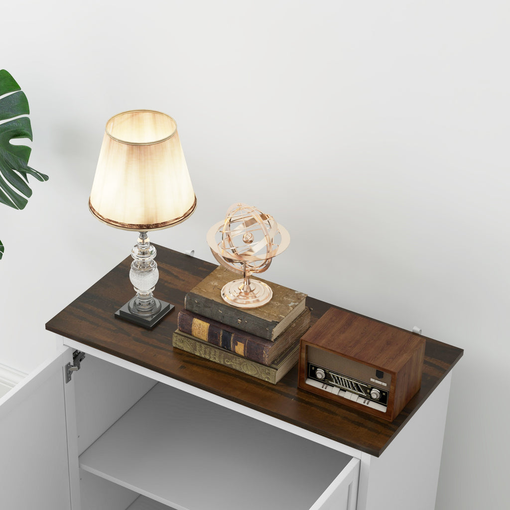 Credenza a 2 Ante Perlinate Ripiano Regolabile 80x39,7x80 cm Bianco