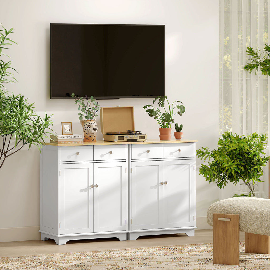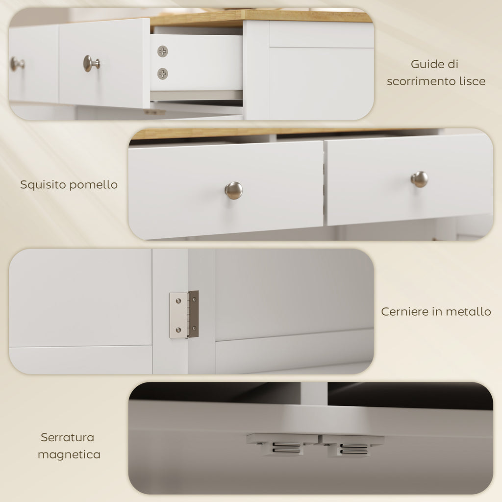 Credenza Bassa 68x40,3x85 cm con Armadietto e Cassetti in MDF e Legno di Caucciù Bianco