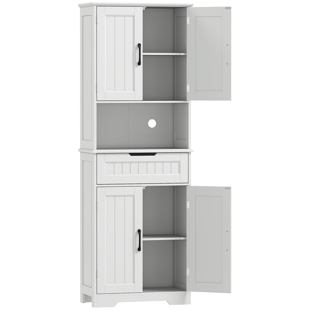 Credenza Cucina 60x30x172 cm con 2 Armadietti Cassetto e Piano Centrale con Passacavi in MDF Bianco