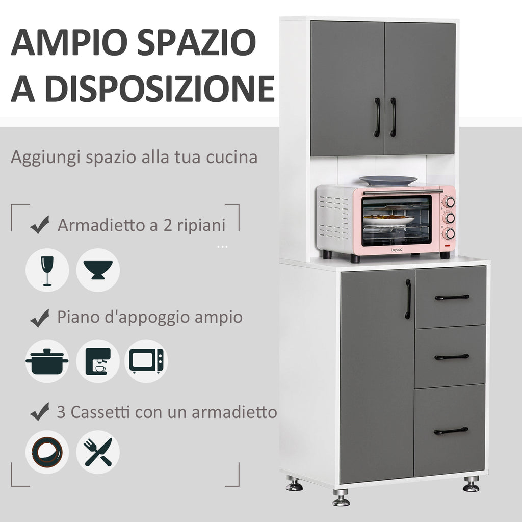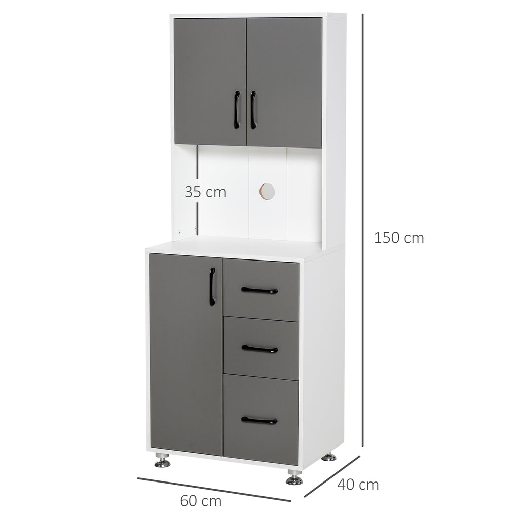 Buffet de cuisine 60x40x150 cm en aggloméré gris et blanc