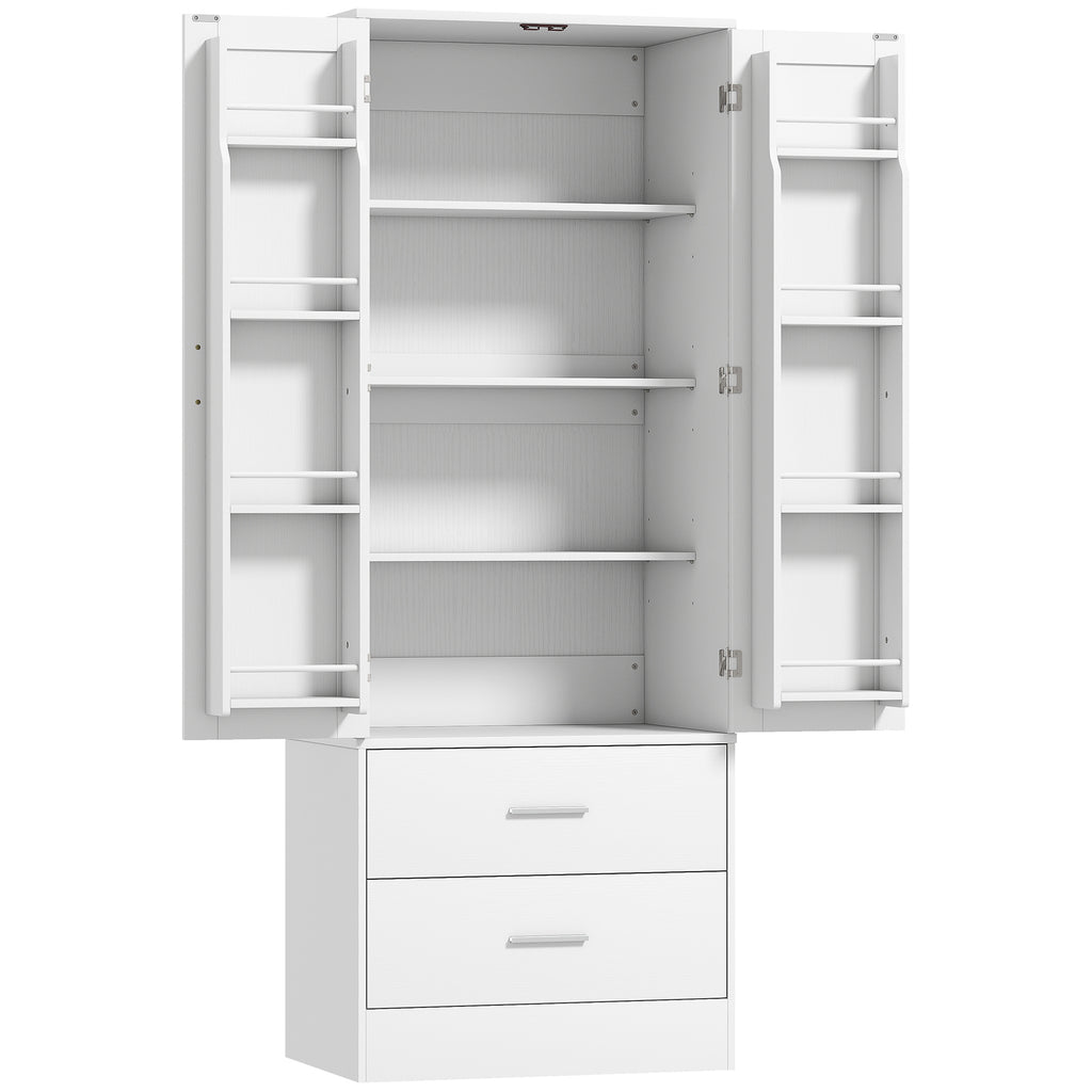 Credenza da Cucina 60x40x159 cm con Armadietto con 8 Ripiani Portaspezie e 2 Cassetti Bianco