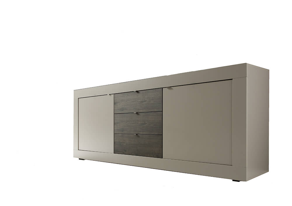 Buffet Meubles de Salon 2 Portes 3 Tiroirs 210x43x86cm TFT Basic Étain Chêne Wengè