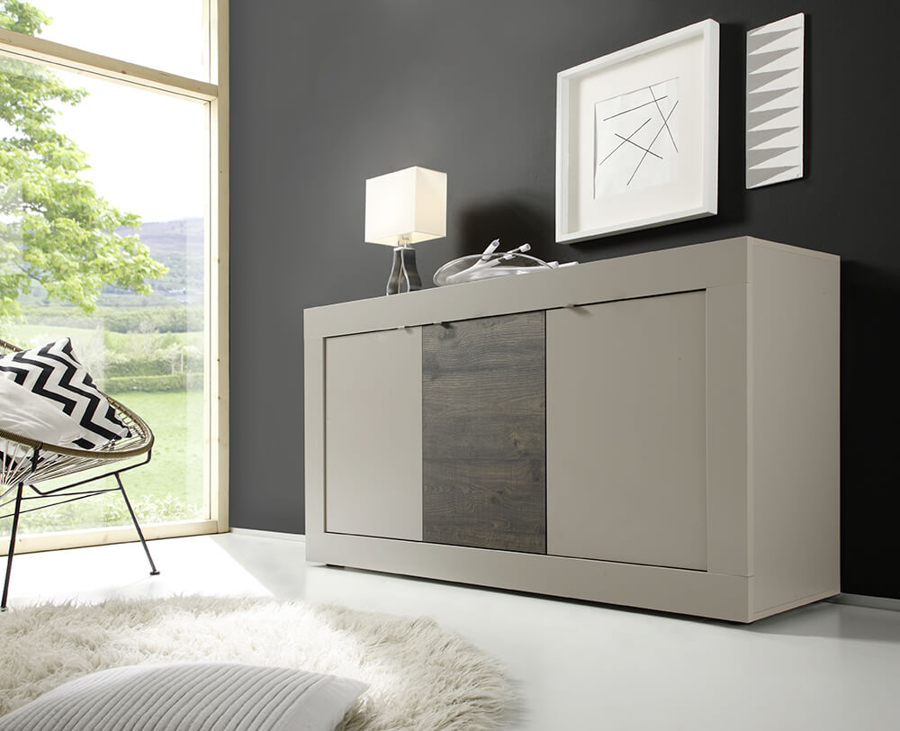 Buffet Meubles de Salon 3 Portes 160x43x86cm TFT Basic Étain Chêne Wengè