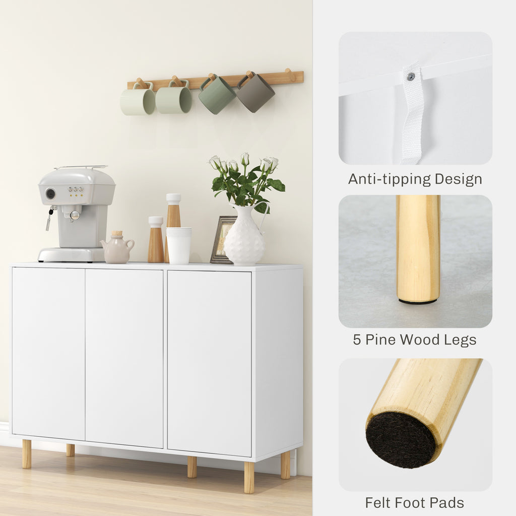 - STILE MODERNO: Lasciati conquistare dal design moderno della nostra credenza da cucina bianca, caratterizzata da ante lisce senza maniglie e gambe in legno in finitura naturale