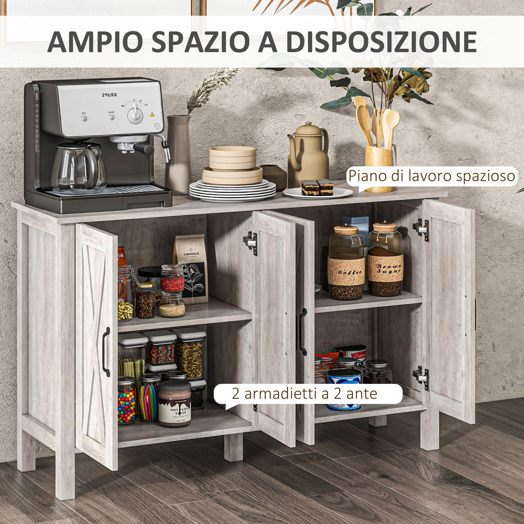 Credenza Stile Rustico Mobile Basso Multiuso 4 Ante 120x37x75 cm Grigio