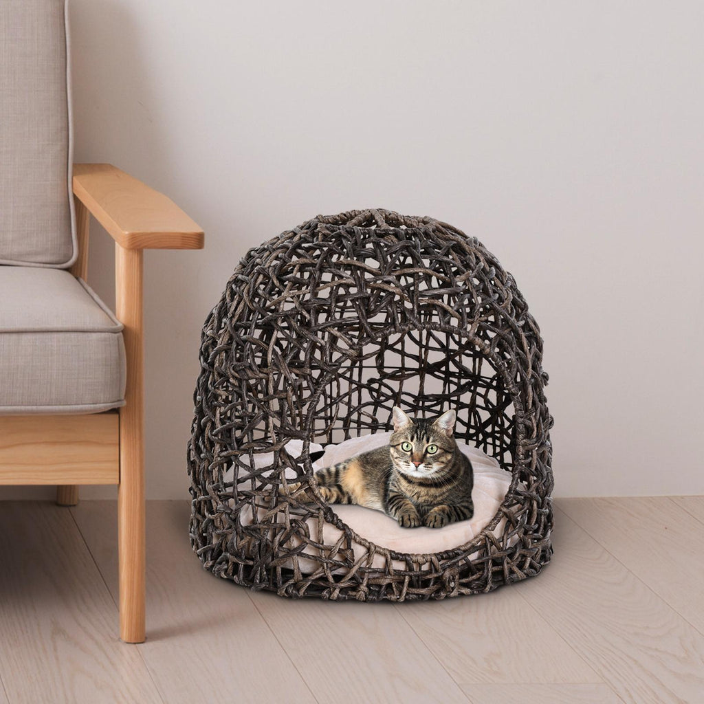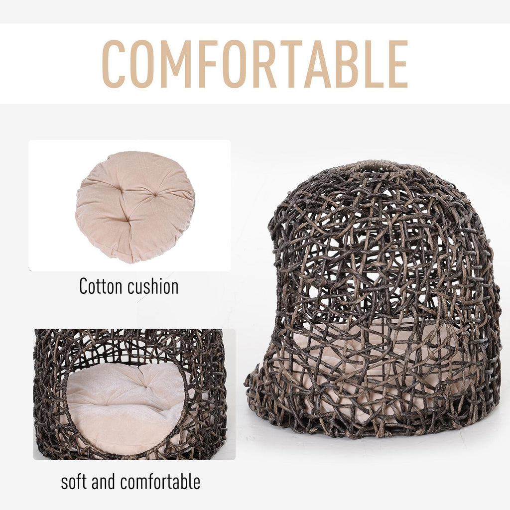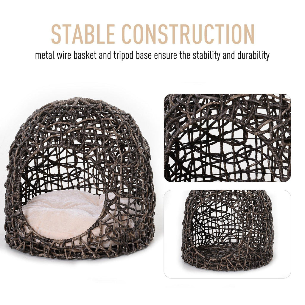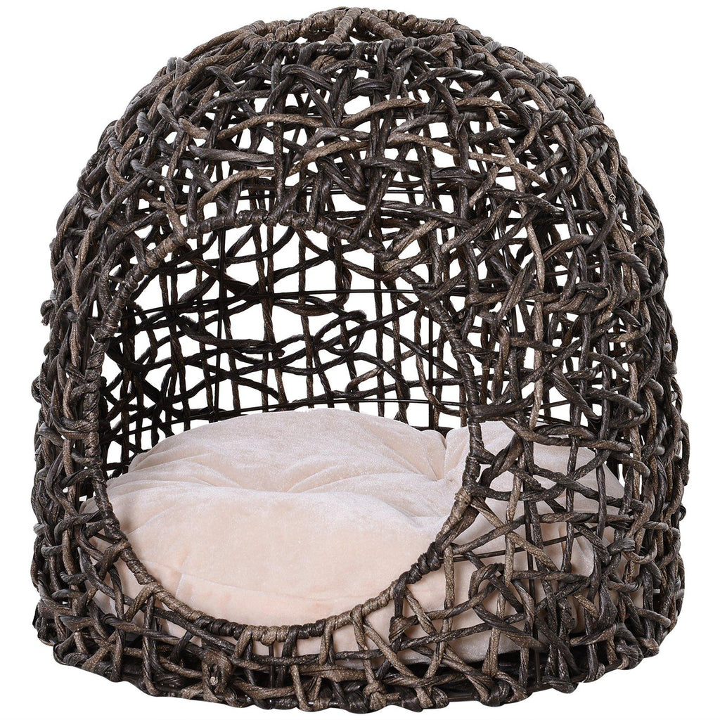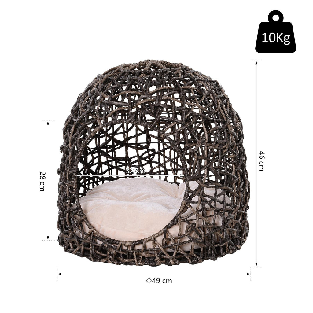 Niche PVC Effet Osier pour Chats Ø49x46 cm avec Coussin Marron