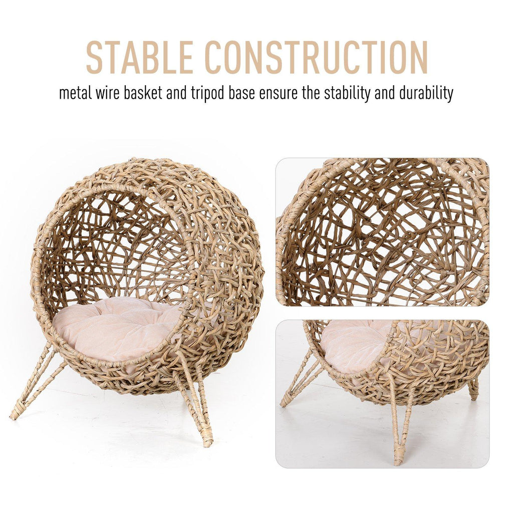 Niche PVC Effet Osier pour Chats Ø52x58 cm avec Coussin Marron Clair