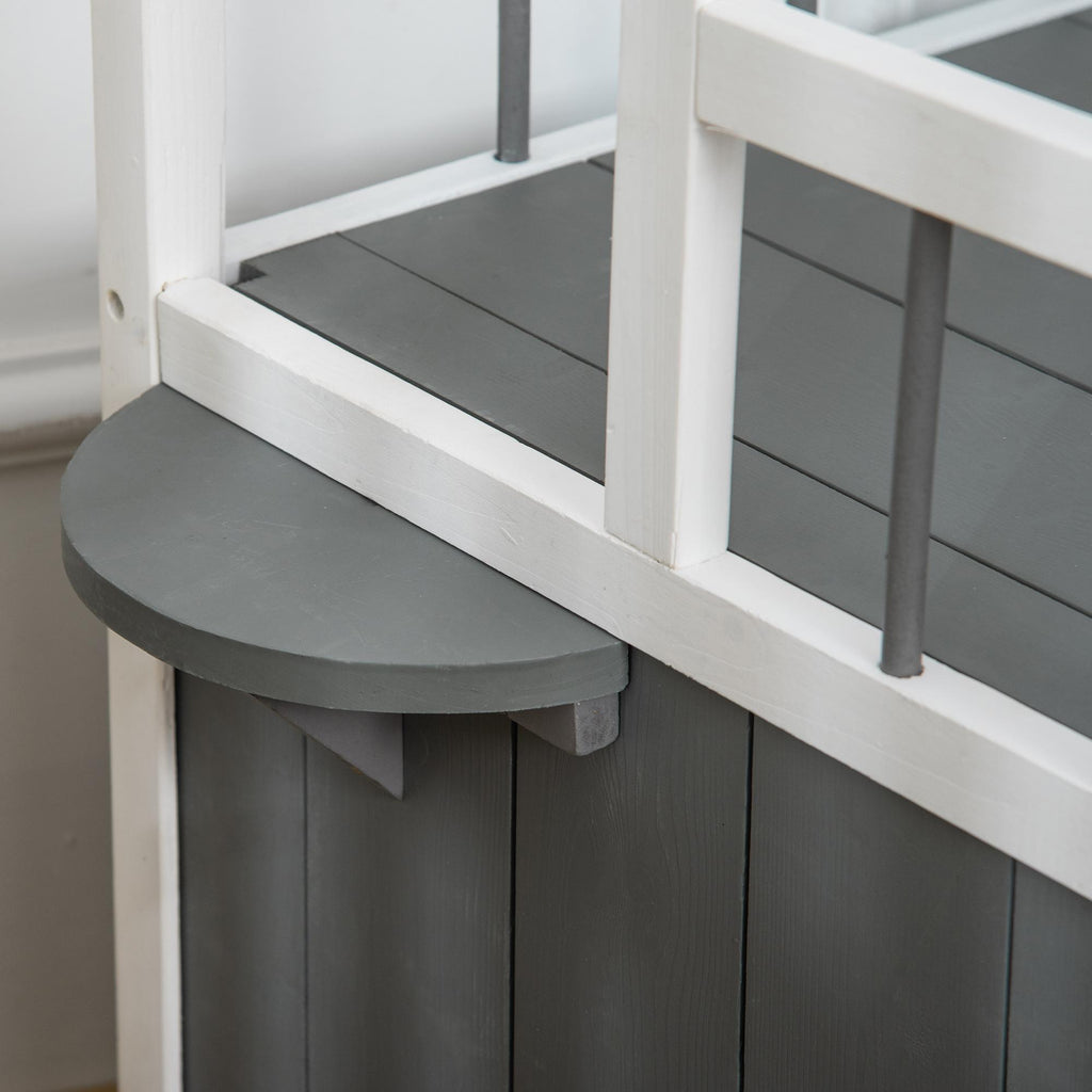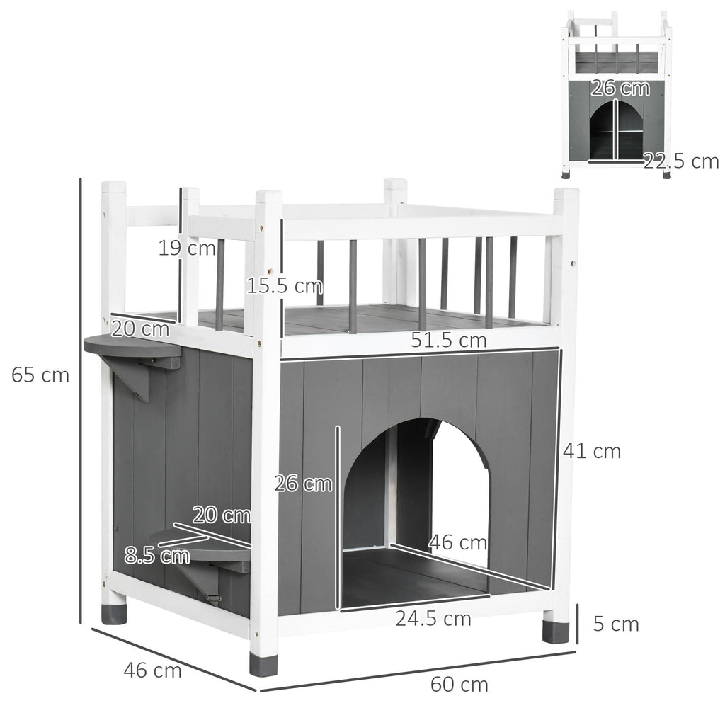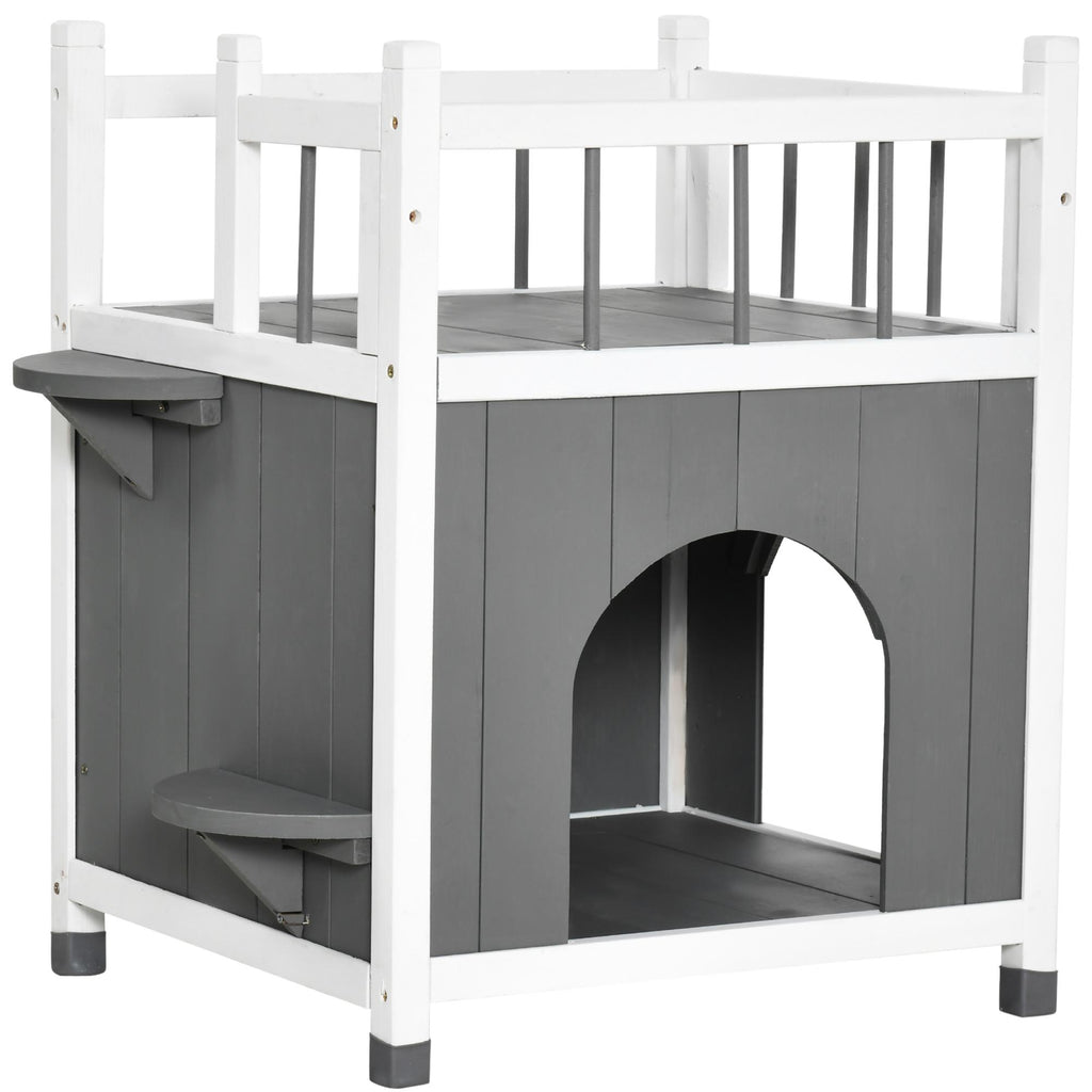 Votre chat aura hâte de profiter de cette niche. Cette niche pour animaux de compagnie à 2 étages convient à 1 à 2 chats, ce qui permet à vos amis à quatre pattes de se sentir à l'aise et en sécurité. La maisonnette comprend 2 marches, 2 portes et un grand balcon pour un accès et un plaisir faciles et est fabriquée en bois de sapin pour un usage quotidien. Ce sera certainement un excellent ajout à votre cour, patio ou tout autre espace extérieur pour se divertir !